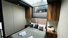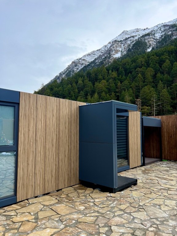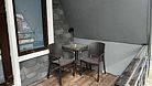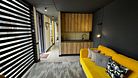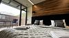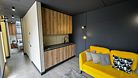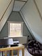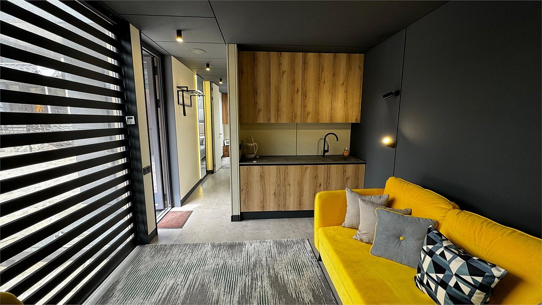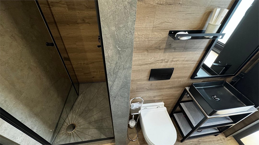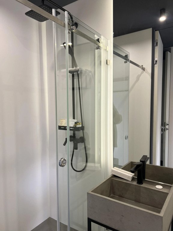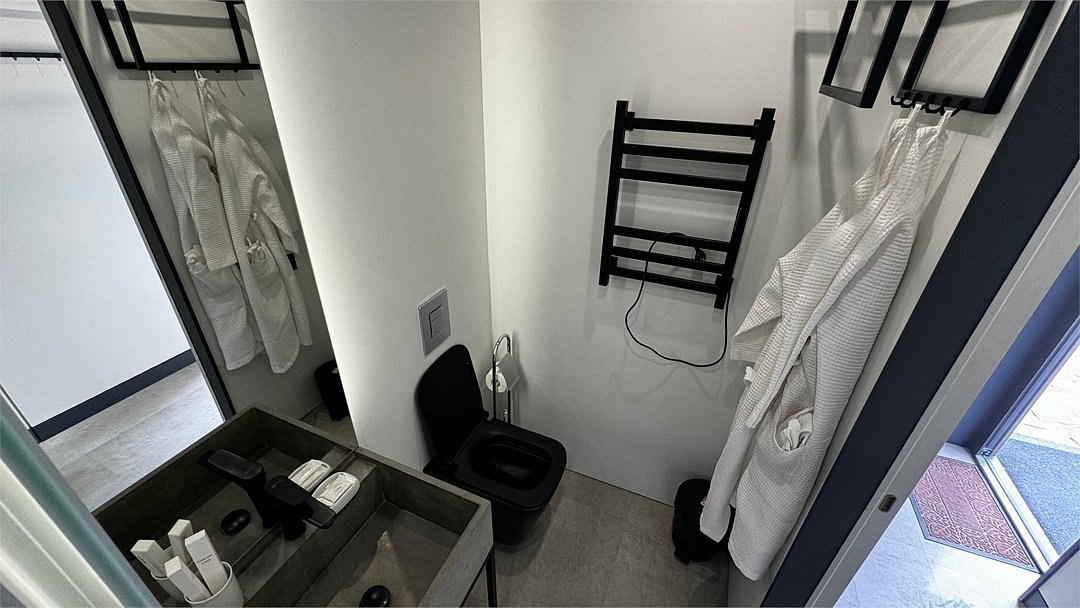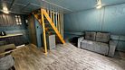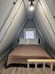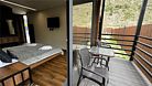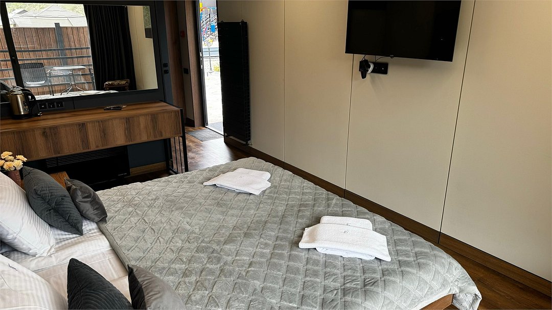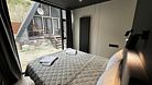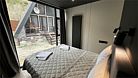 Двухместный коттедж площадью 30 м² – небольшой, но очень уютный домик с балконом. Здесь есть двуспальная кровать с ортопедическим матрасом, туалетный столик с зеркалом, банкетка, тумбочки, светильники, холодильник, микроволновая печь, электрический чайник, телевизор со Smart-TV. В ванной комнате: душевая кабина с тропическим душем, раковина, зеркало с подсветкой, унитаз, гигиенический душ, гигиенические средства (шампунь, гель для душа, жидкое мыло), фен, полотенцесушитель. Также для гостей предоставляем хлопковые халаты и тапочки. На балконе – столик и садовые стулья.А-фрейм двухэтажный