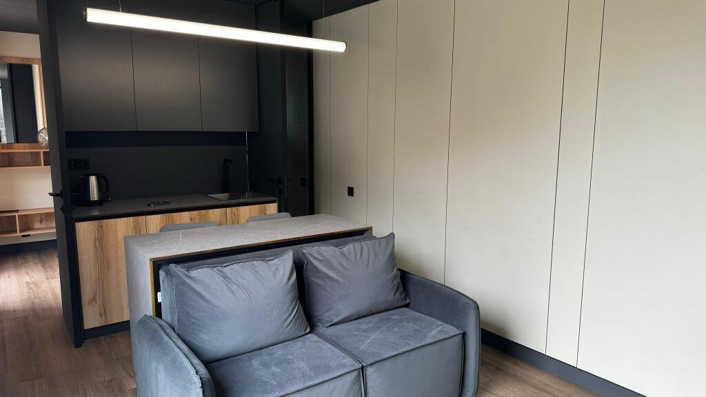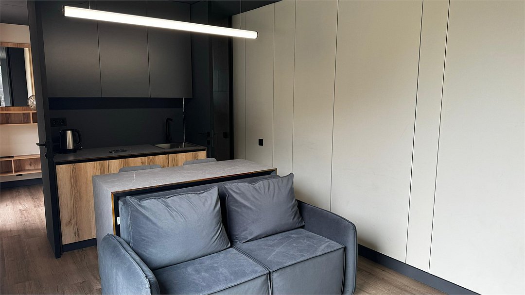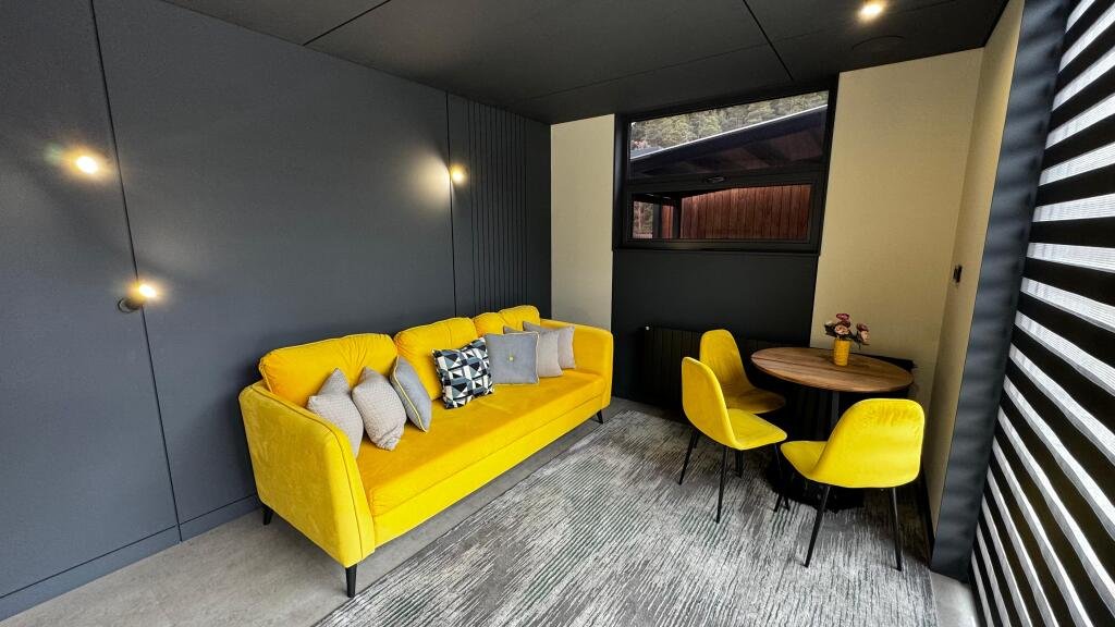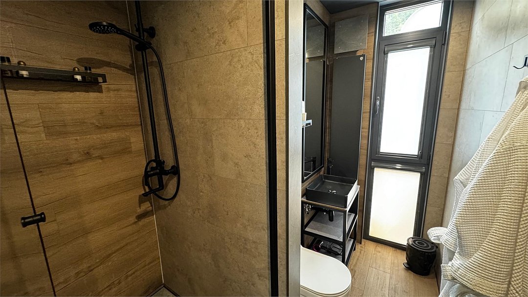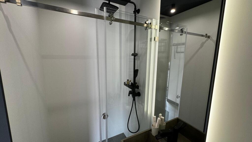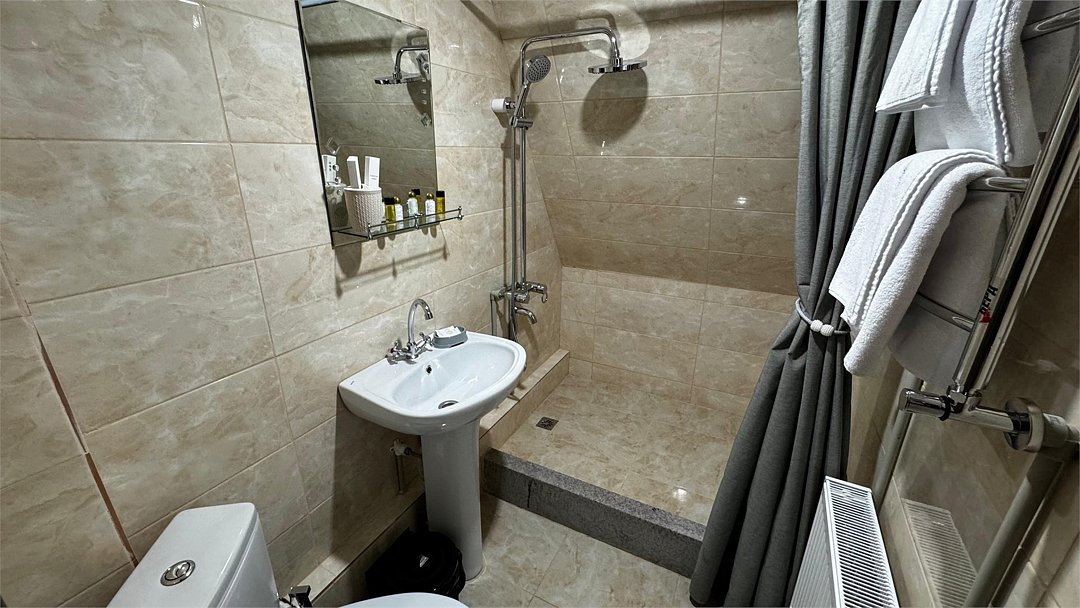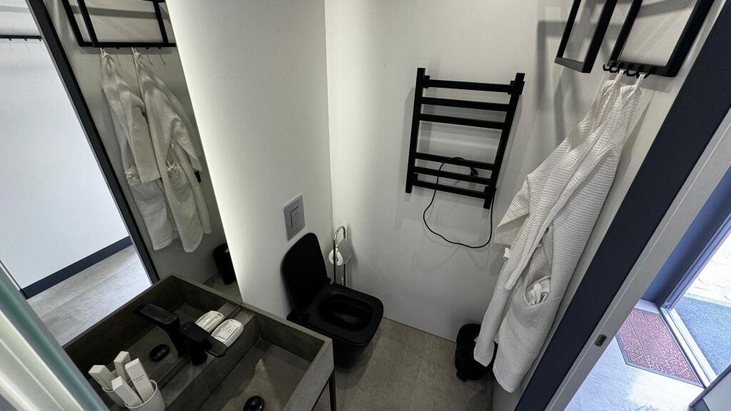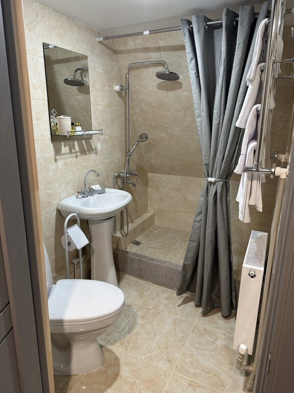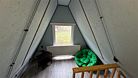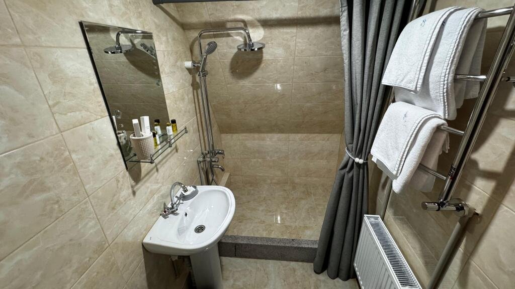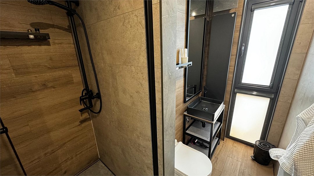Двухэтажный коттедж A-frame площадью 48 м² вмещает до 4 человек. На первом этаже расположена небольшая кухня с холодильником, микроволновой печью, всей необходимой посудой. Также здесь раскладной диван, телевизор со Smart-TV, обеденный стол и стулья. На втором этаже – двуспальная кровать с ортопедическим матрасом под мансардной крышей, уютное мягкое кресло и столик у окна с видом на горы. В ванной комнате: душевая кабина с тропическим душем, раковина, зеркало с подсветкой, унитаз, гигиенический душ, гигиенические средства (шампунь, гель для душа, жидкое мыло), фен, полотенцесушитель. Для всех гостей предоставляем хлопковые халаты и тапочки. При входе в домик – кресло-качеля и небольшой столик со стульями.Коттедж семейный