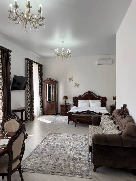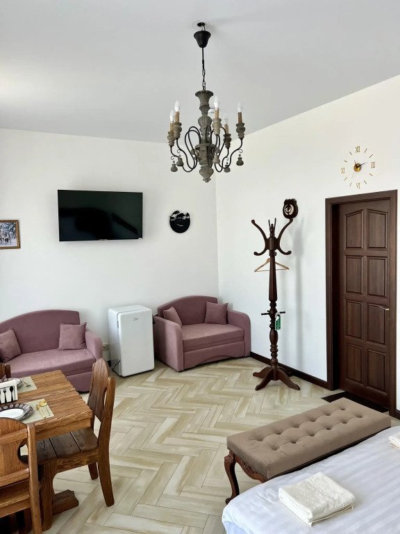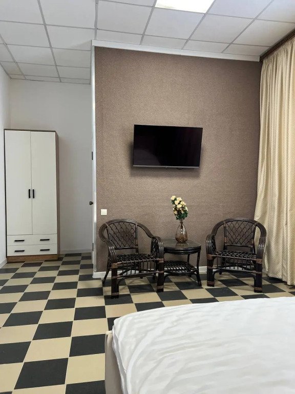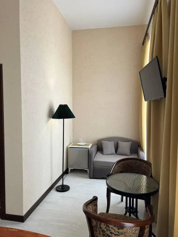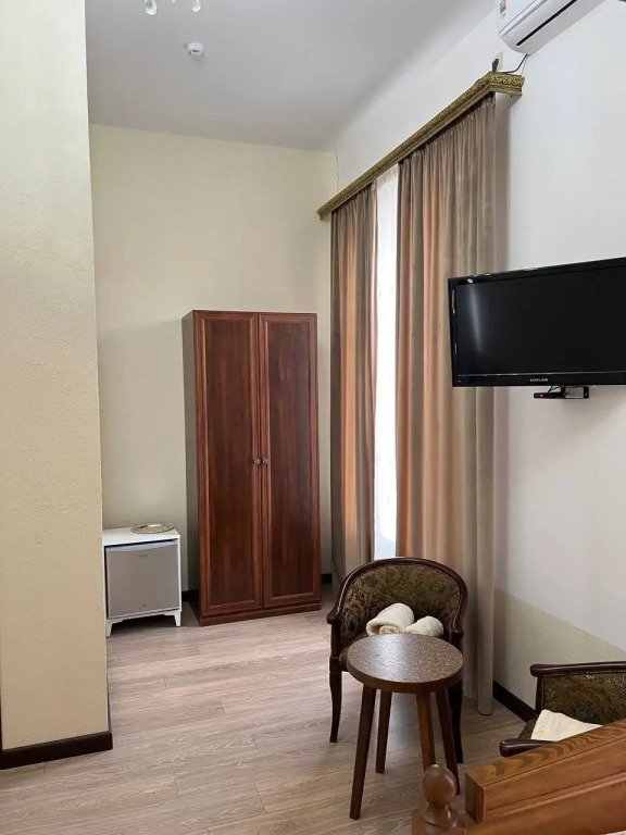 Номер уютно обставлен и оснащён необходимым, чтобы отдохнуть после долгого и насыщенного дня. Имеются телевизор и халат. Перечисленные услуги есть не во всех номерах.