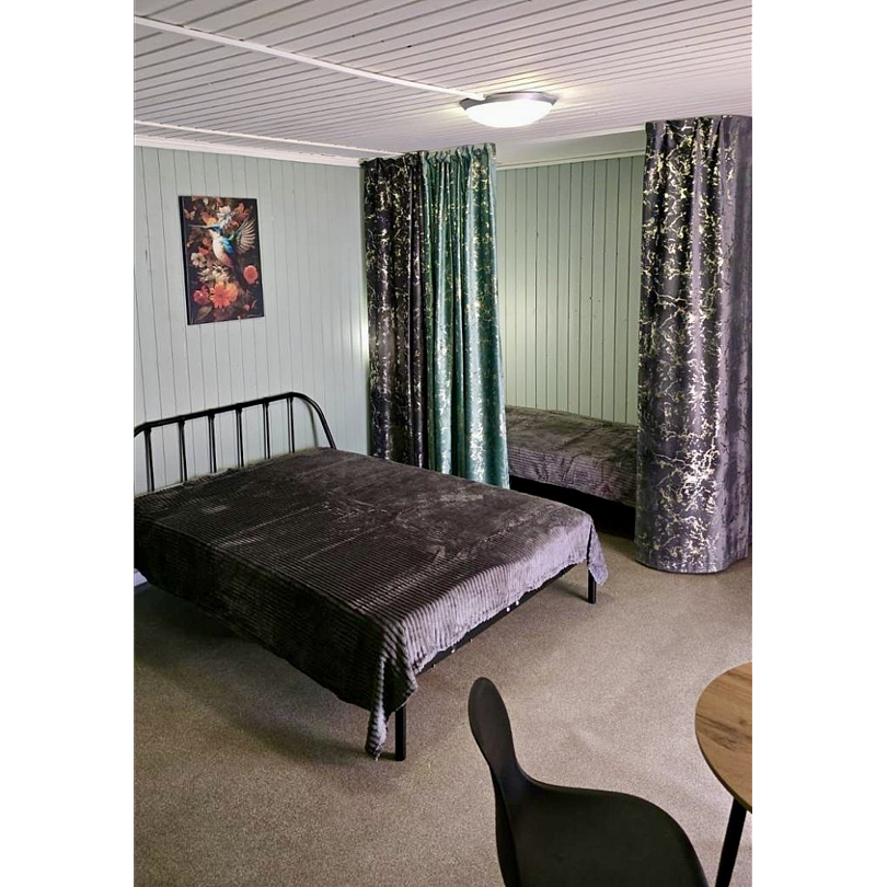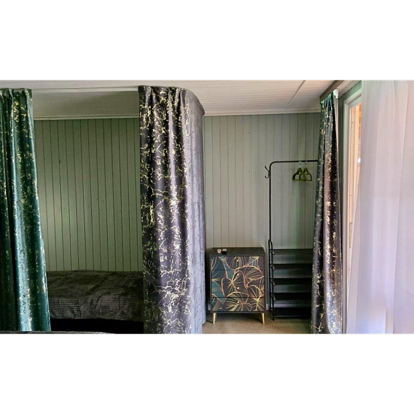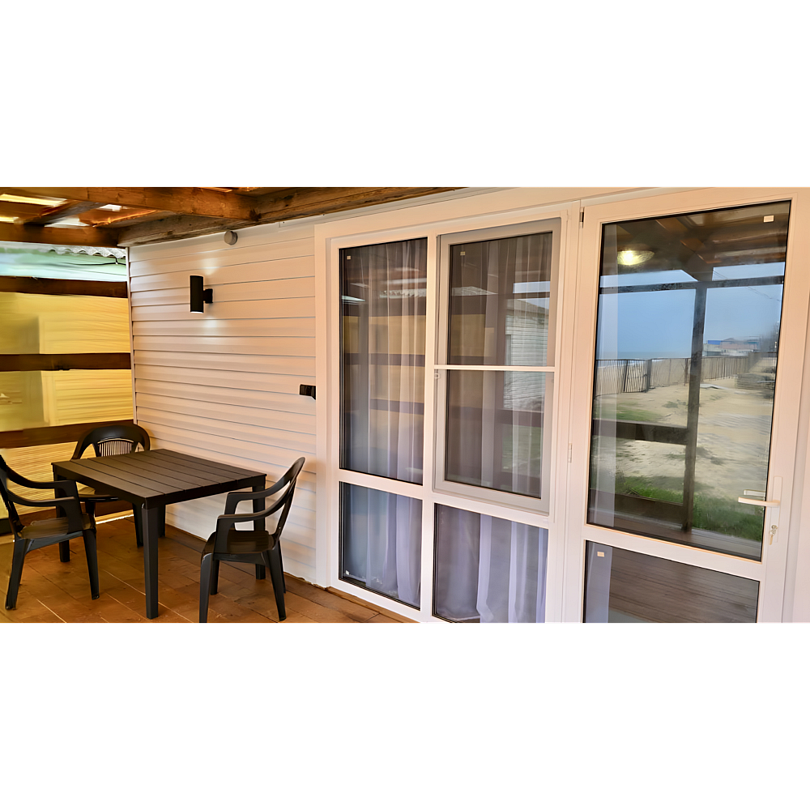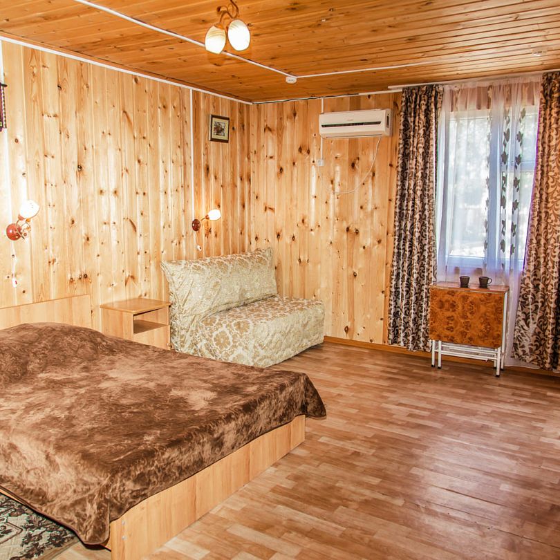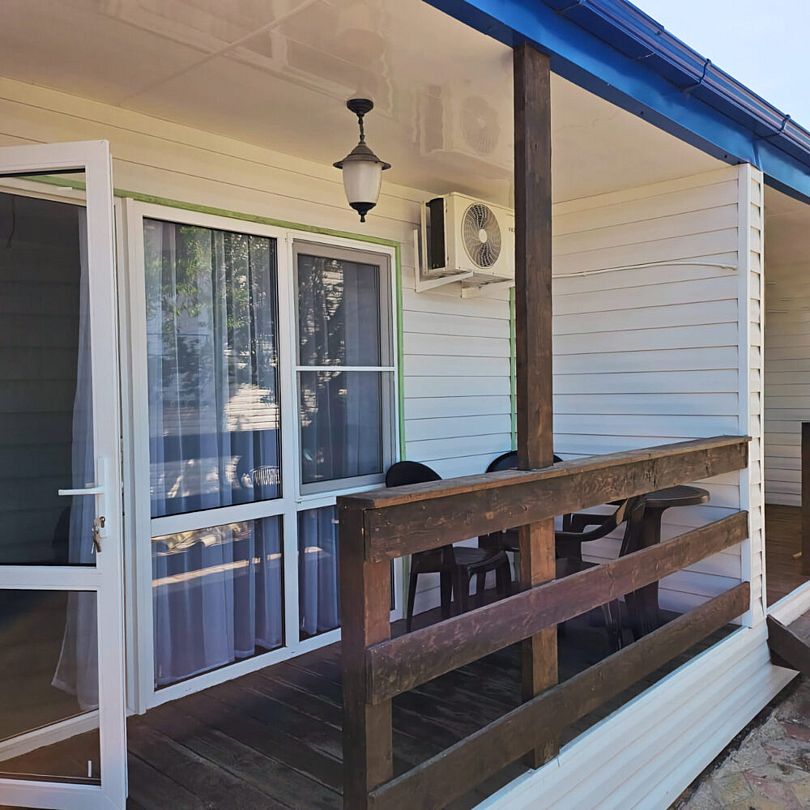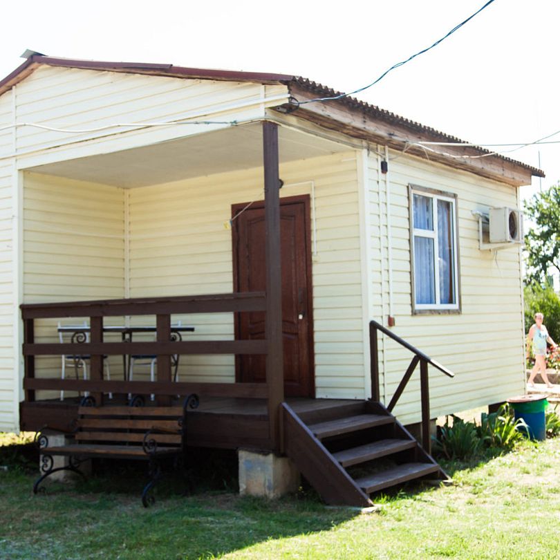 Для отдыха в номере имеется 2-х спальная кровать и односпальная со светонепроницаемой шторкой. Для каждого домика предусмотрена индивидуальная крытая терраса.