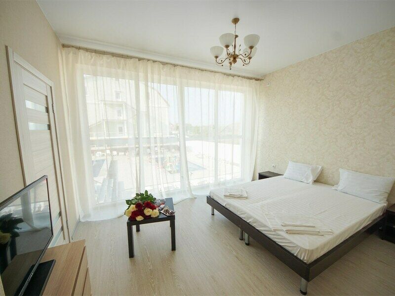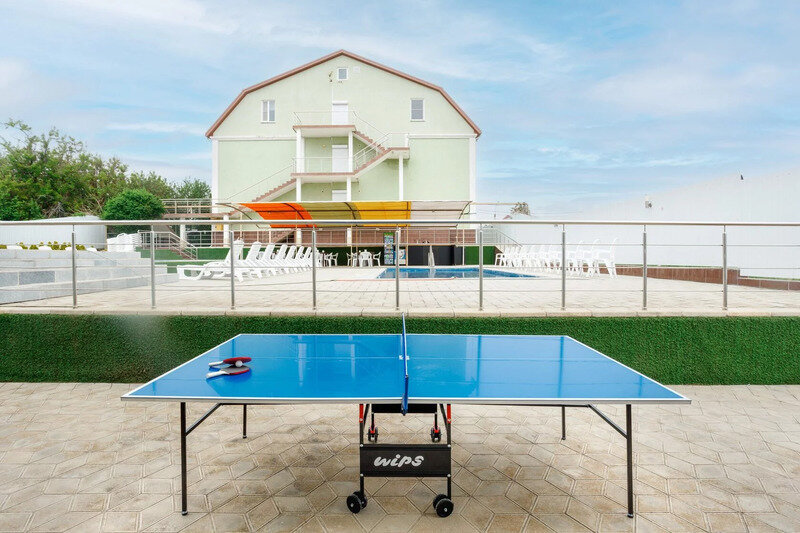 Наряду с этим уровень комфорта отеля невероятно высок: пляж находится в шаговой доступности, и там же расположена популярная достопримечательность станицы — грязевое озеро. Подъезд к месту проживания очень удобен, а просторная парковка позволяет размещать транспорт без тесноты.