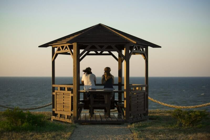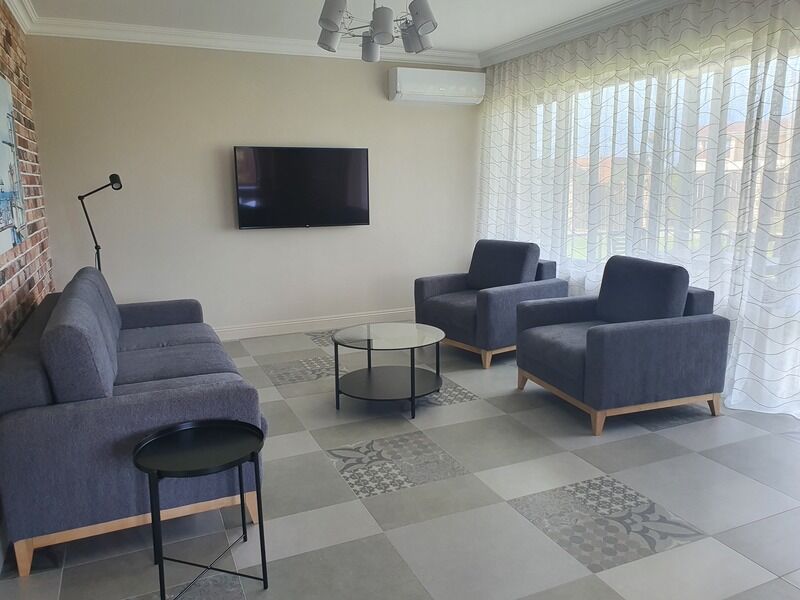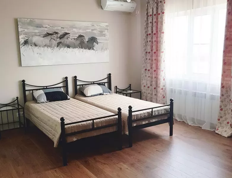 В аренду сдаются двухкомнатные коттеджи состоящие из 4 спален, гостиной и кухни, просторной лоджии, ванной комнаты, душевой, и 2-х туалетов — комфортные условия для размещения 8 человек. Дома расположены в часе езды от аэропорта Анапы, в спокойном и живописном месте — среди виноградников, и в непосредственной близости к тихому песчаному пляжу Азовского моря. Можно проживать с животными. Сдаются в аренду от 7 суток.
