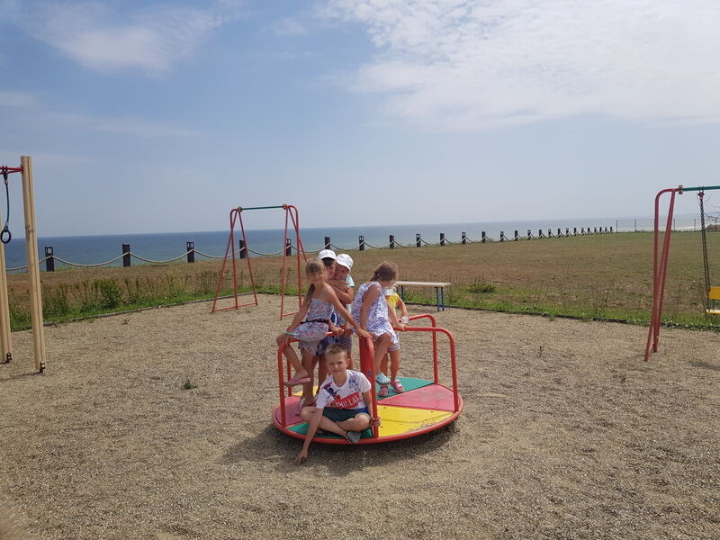 На охраняемой территории поселка есть теннисный корт, беседки, спортивный комплекс, детская площадка, удобный спуск к морю.