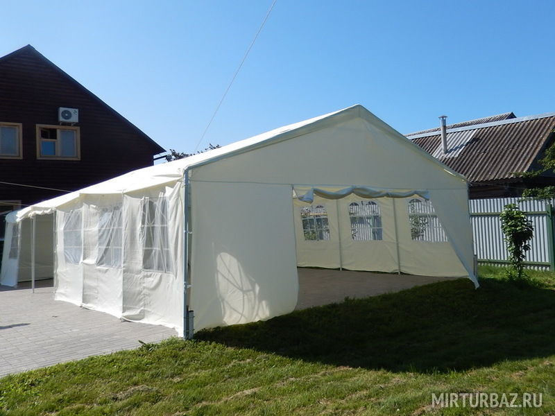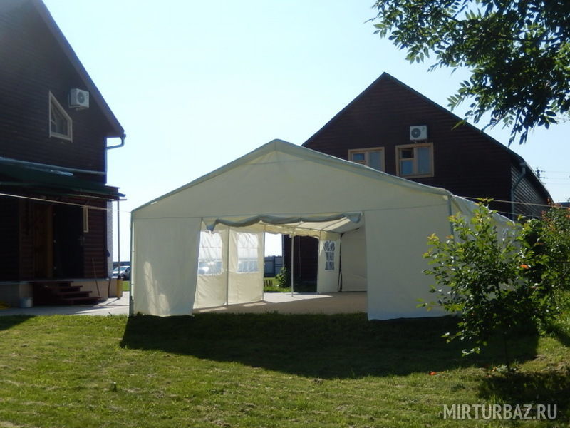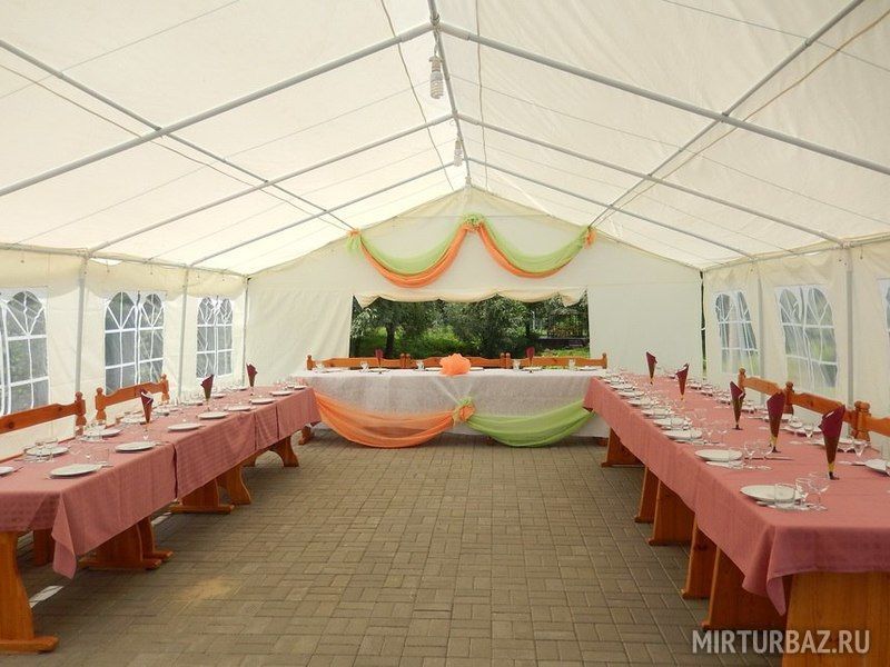 Для проведения в весенне-летний период мероприятий с числом участников до 70 человек база предлагает в аренду шатёр площадью 72 кв.м. (6мХ12м).
