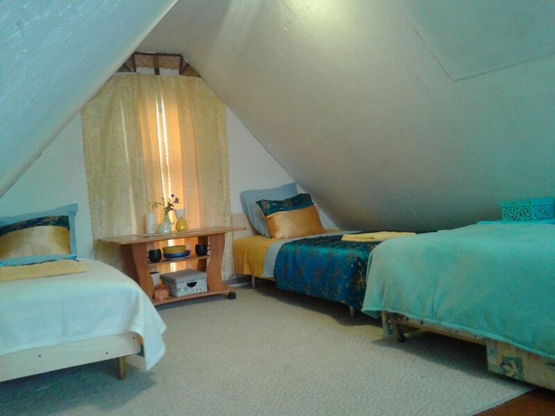 На верхнем этаже Чайнатауна расположены 2 спальни. Спальня маленькая с односпальными кроватями, которые можно сдвинуть, подростковый диван.