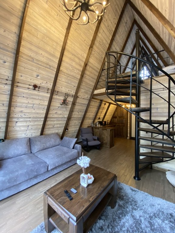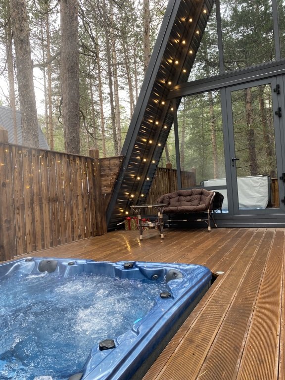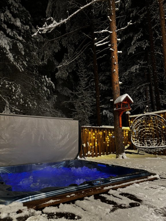 Дом оборудован просторной верандой, где можно отдыхать на уличной мебели, расслабляться в гамаке или качелях, наслаждаясь окружающей природой. Внутри дома есть все необходимое для комфортного проживания: смарт-телевизор, доступ к Wi-Fi, холодильник, микроволновая печь, электрический чайник, плита, фен, а также индивидуальный набор гигиенических средств. Есть джакузи.