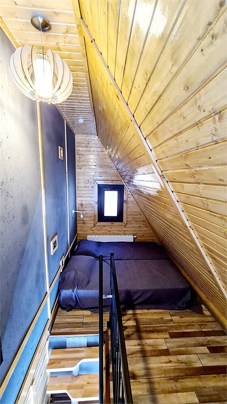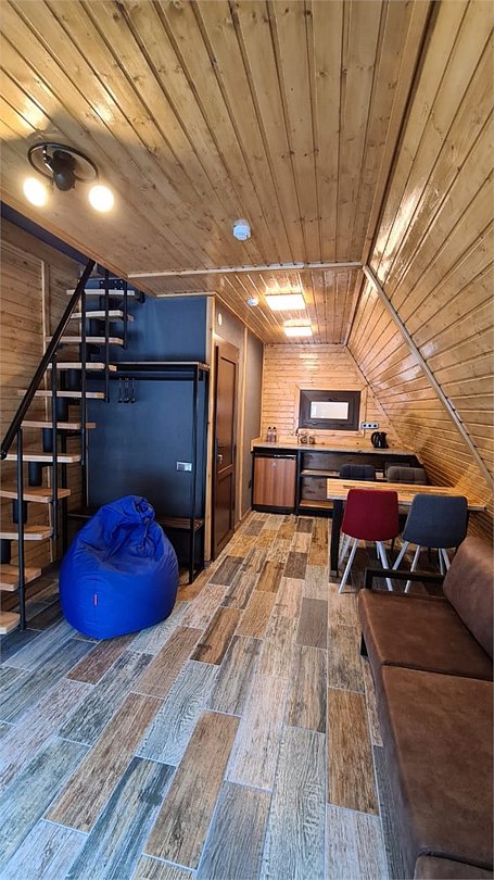 Уютный двухуровневый номер в стильном домике, расположенном на территории Eco Shale — идеальное место для отдыха после активного дня в горах. Просторный первый этаж с удобной зоной отдыха (диван, кресло-мешок, телевизор) и всем необходимым для комфорта: мини-холодильник, чайно-кофейная станция и сейф. Удобная вешалка и стол со стульями позволят с комфортом переодеться и собраться на прогулку. Второй этаж — уютная спальня с двумя двухместными ортопедическими матрасами, где вы отлично выспитесь после насыщенного дня. Дополнительные удобства: тёплый пол (в холодный сезон), собственный санузел с душем и набором косметики, бесплатный Wi-Fi, место для хранения лыж и сноуборда, небольшая терраса с атмосферой горного отдыха.Услуги и удобства