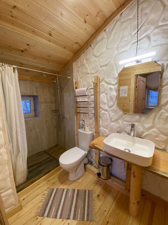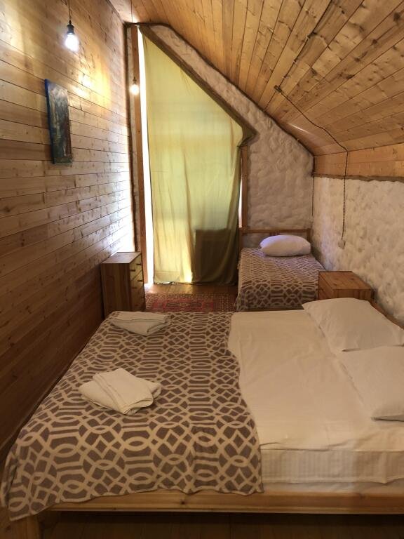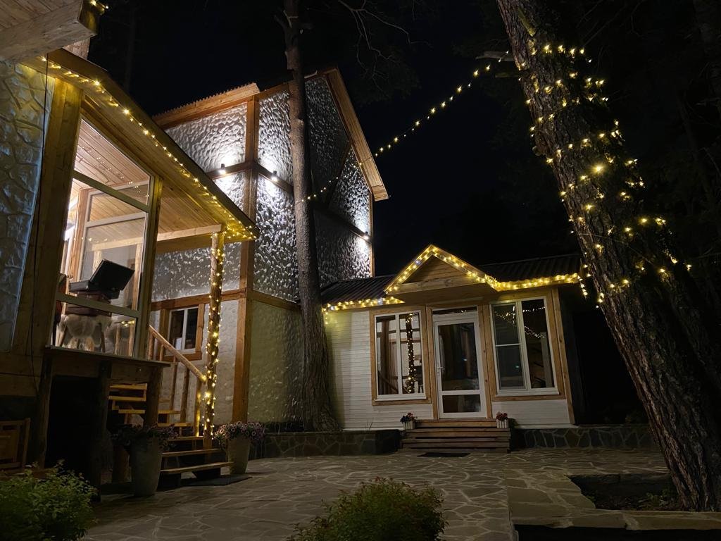 дом оснащен всем необходимым для комфортного проживания: собственный санузел с душем, просторная веранда с прекрасным видом, комната отдыха, собственная кухня. Уборка номера, смена полотенец, постельного белья производится один раз в три дня.