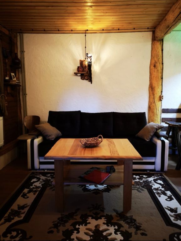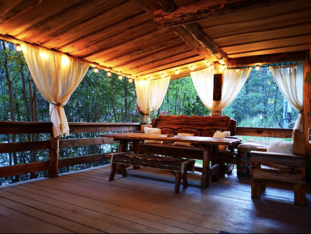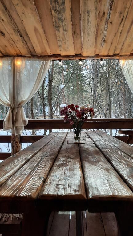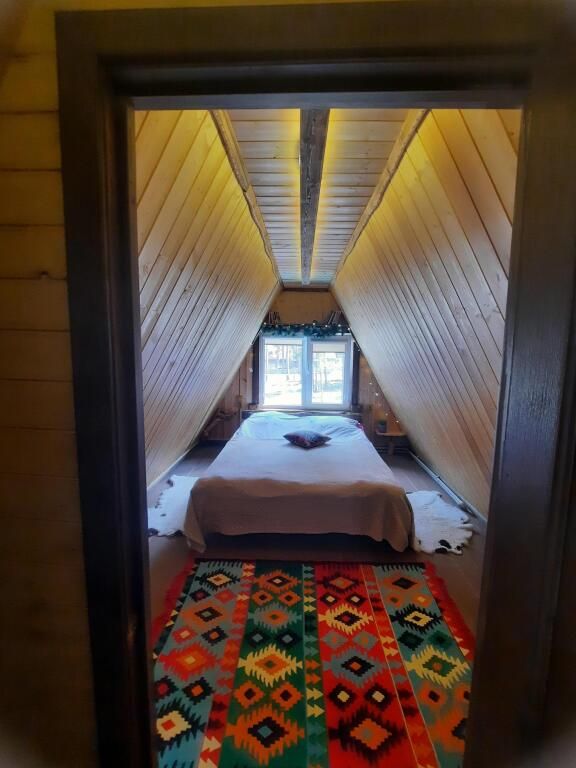 Треугольный дом находится в сосновом бору с горной речкой на территории. В доме две изолированные спальни, полноценная кухня. Есть мангальная зона. В доме все условия для комфортного проживания.