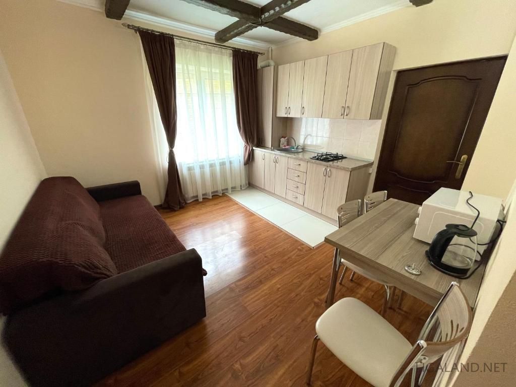2 номера и кухня. Данный коттедж рассчитан на небольшую компанию из 6 человек. (максимально на 8 человек).
