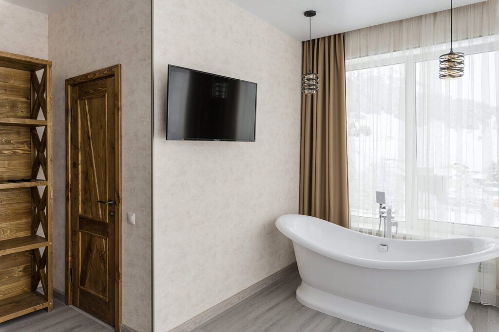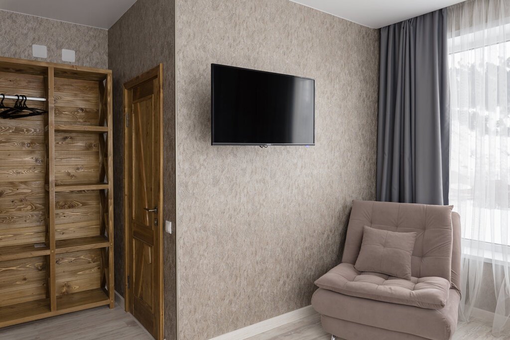 В номере вас будут ждать телевизор. Оснащение зависит от выбранной категории номера.