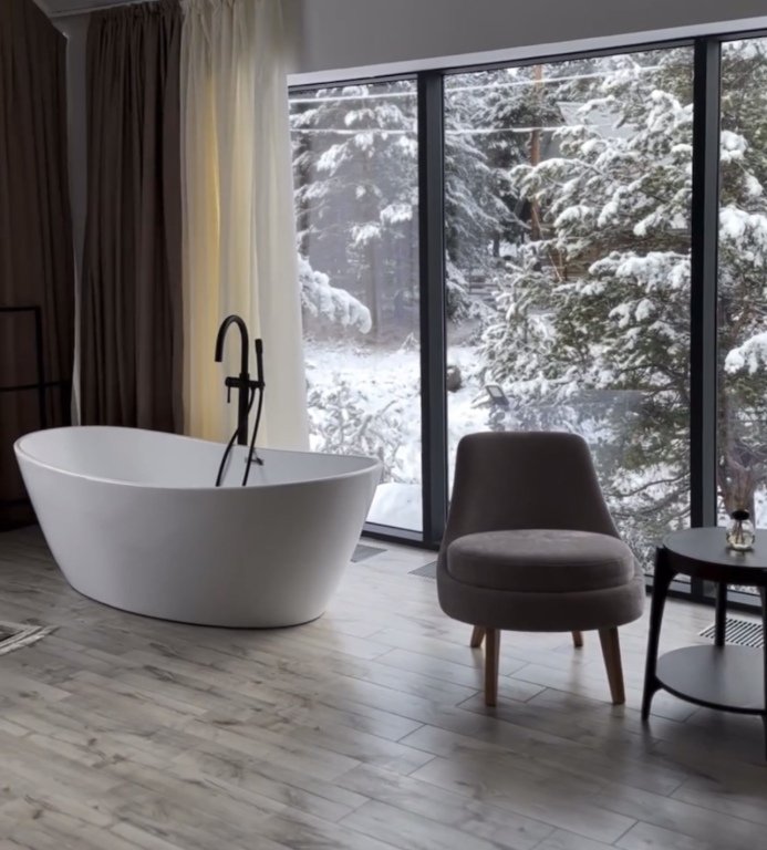 два телевизора, Wi-Fi, интернет, холодильник, фен, микроволновая печь, ванна, теплый пол, халаты, банные полотенца, тапочки, косметические средства, терраса, двуспальная кровать, диван, тумбы, стулья, шкаф для одежды, вешалки, обеденный стол, зеркало, две комнаты, кухня, чайный набор, информационная карта, меню, минеральная вода, чайник, мягкая мебель, обеденная зона, гостиная зона, высокие потолки, кухонная посуда, кухонная утварь, две ванные комнаты, стол, туалетные средства, панорамные окна, раскладной диван, внутренний телефон, мини-холодильник, мини-кухня, вид на горы, телевизор со Smart TV, теплые полы, вид на лес, холодильный шкаф, гигиенический душ, угловой диван-кровать, чайная станция, уборка номера, набор для приготовления чая и кофе, туалетные принадлежности премиум-класса, бутилированная водаВ гостиничном номере