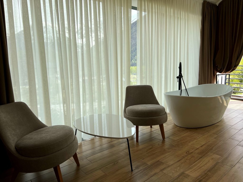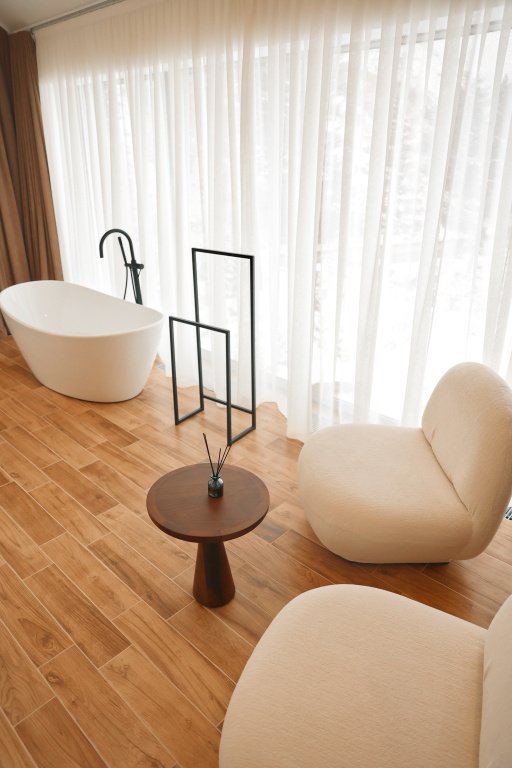 два телевизора, Wi-Fi, интернет, холодильник, фен, микроволновая печь, ванная комната, душевая кабина, ванна, теплый пол, халаты, банные полотенца, терраса, двуспальная кровать, гипоаллергенное белье, ортопедический матрас, диван, стулья, шкаф для одежды, вешалки, зеркало, две комнаты, кухня, мини-бар, чайный набор, набор посуды, информационная карта, меню, сейф, минеральная вода, чайник, мягкая мебель, питьевая вода, гостиная зона, душ, кресло, высокие потолки, кухонная посуда, стаканы, столовые приборы, две ванные комнаты, стол, тумба, туалетные средства, панорамные окна, раскладной диван, внутренний телефон, мини-холодильник, мини-кухня, кухонный уголок, вид на горы, телевизор со Smart TV, теплые полы, вид на лес, гигиенический душ, два дивана-кровати, чайная станция, уборка номера, набор для приготовления чая и кофе, туалетные принадлежности премиум-класса, бутилированная водаВ гостиничном номере