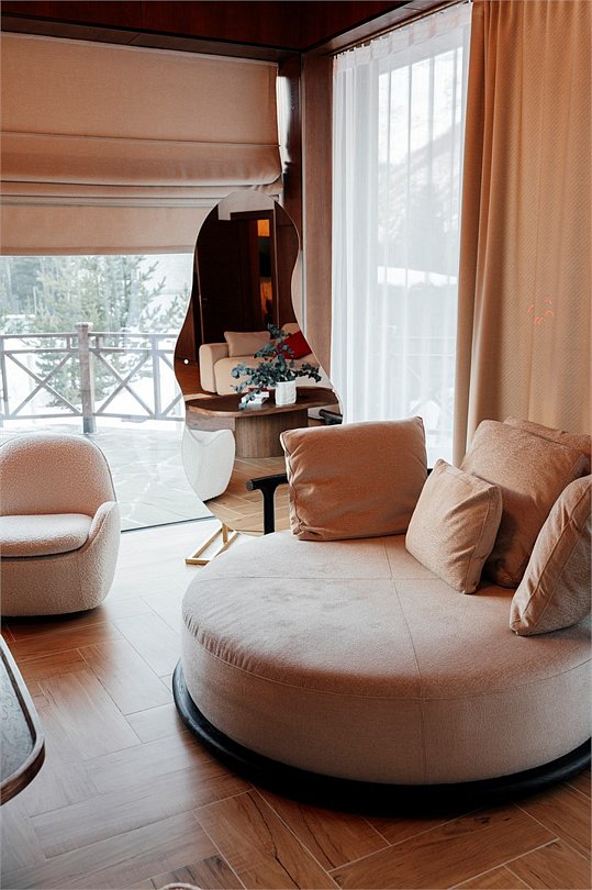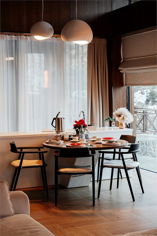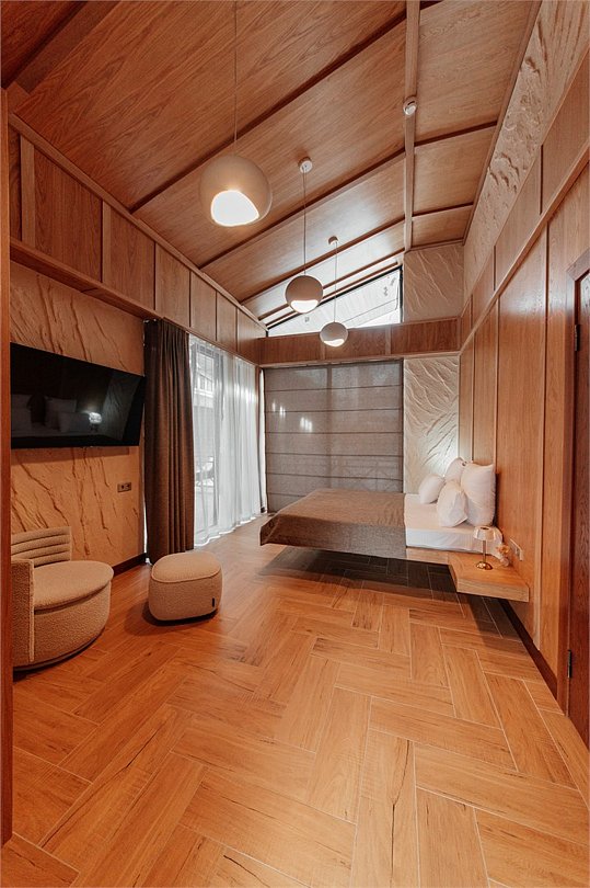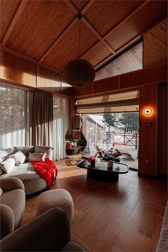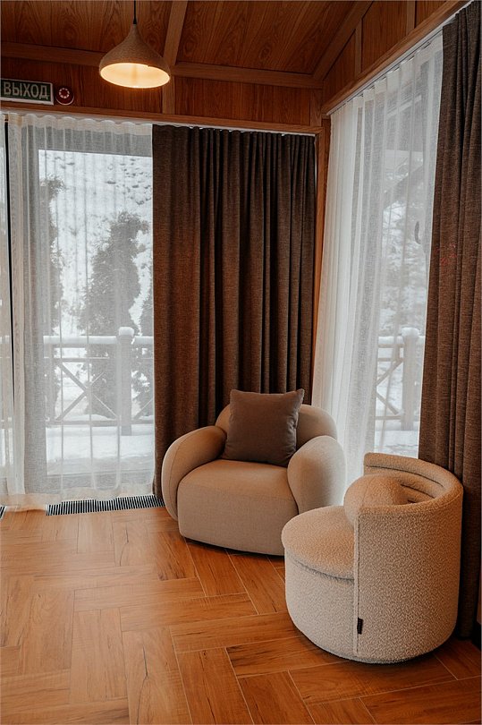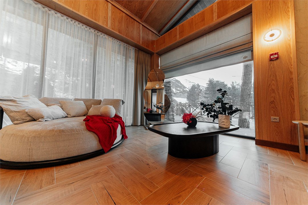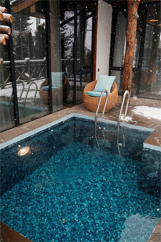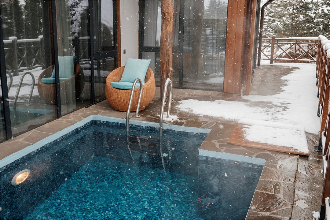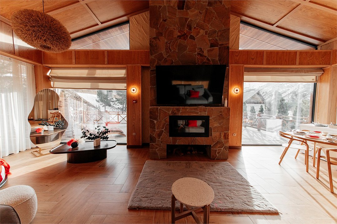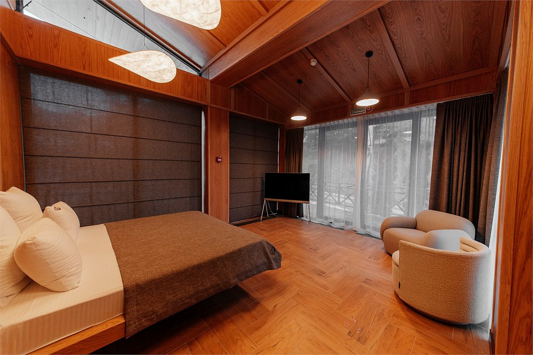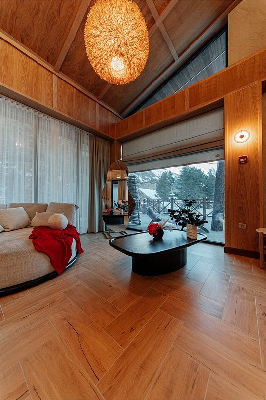 Роскошные шале Премиум класса с подогреваемым бассейном, собственной террасой и камином. В шале расположены две спальни с собственными ванными комнатами и панорамными окнами. Также для гостей разжигается камин, подача еды из ресторана и чистая родниковая вода.Услуги и удобства