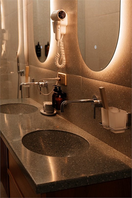 В номере есть все необходимое для комфортного пребывания и спокойного сна. К вашим услугам большая кровать, два больших раскладных дивана, принадлежности для приготовления чая и кофе и бесплатный Wi-Fi. Номера этой категории предлагаются с одной двуспальной кроватью на втором этаже и большим раскладным диваном на первом. В наших ванных комнатах с банными принадлежностями вы сможете расслабиться и восстановить силы, а ароматная соль поможет почувствовать уникальность отеля Residence.Услуги и удобства