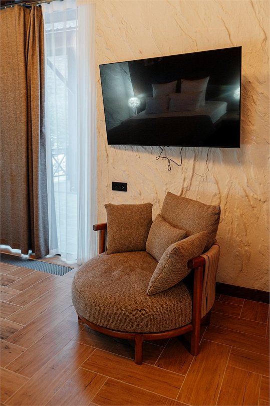 В номере гостей ждут телевизор, мини-бар и халат. Перечисленные услуги есть не во всех номерах.