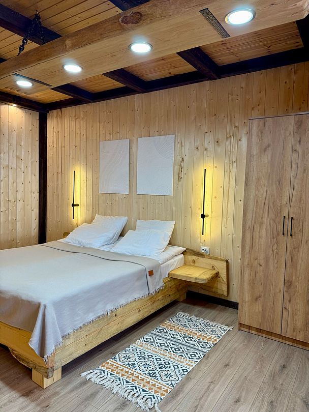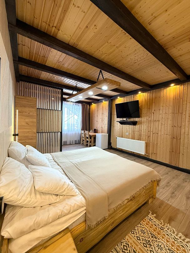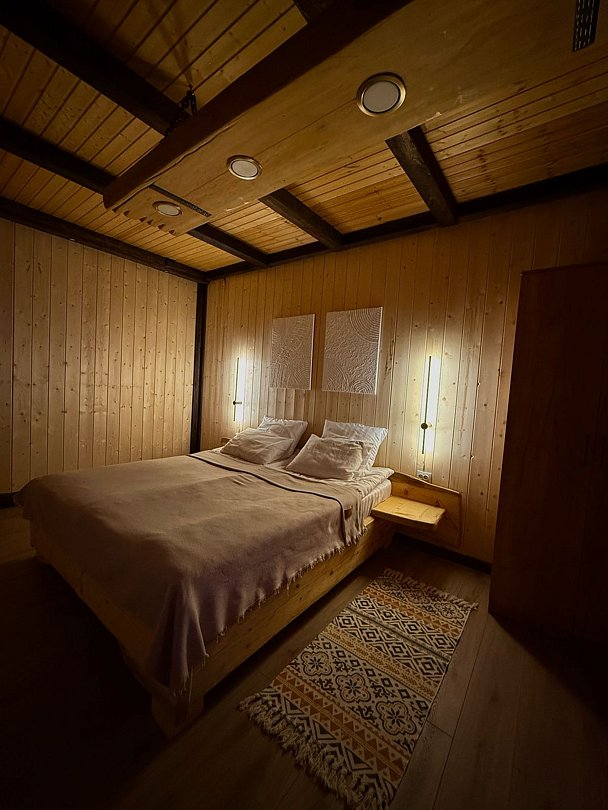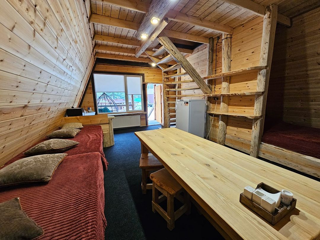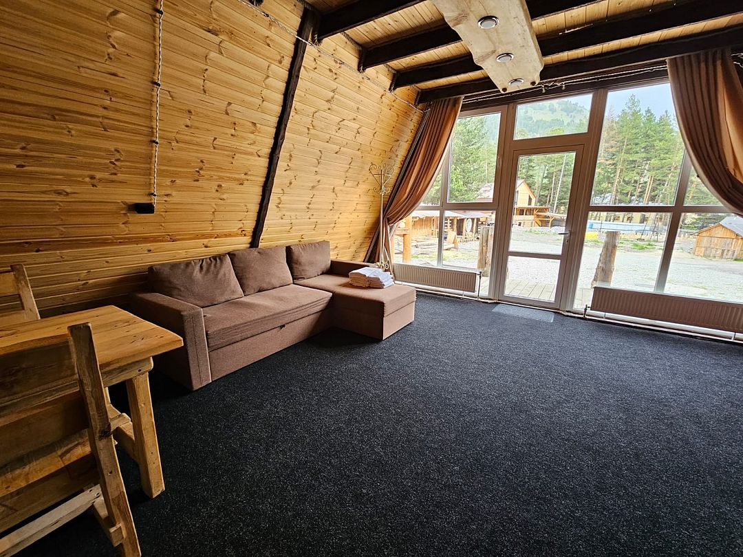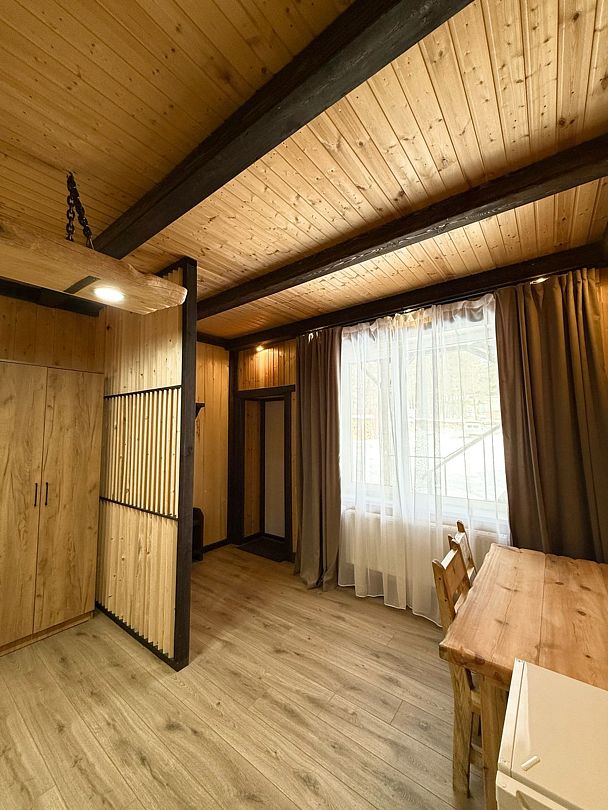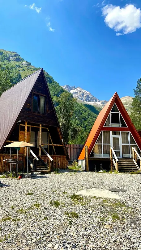 Комфортабельное размещение обеспечено в двухместных номерах, оформленных в экологичном стиле с использованием натурального дерева. Просторные комнаты оборудованы удобными односпальными или двуспальными кроватями, а из окон открываются захватывающие панорамные виды на окружающие горные пейзажи. Для вашего удобства некоторые номера оснащены собственными балконами, с которых можно насладиться свежим горным воздухом и неповторимыми закатами. Помимо этого, гости могут разместиться в уютных треугольных шале, оснащенных всеми необходимыми удобствами.