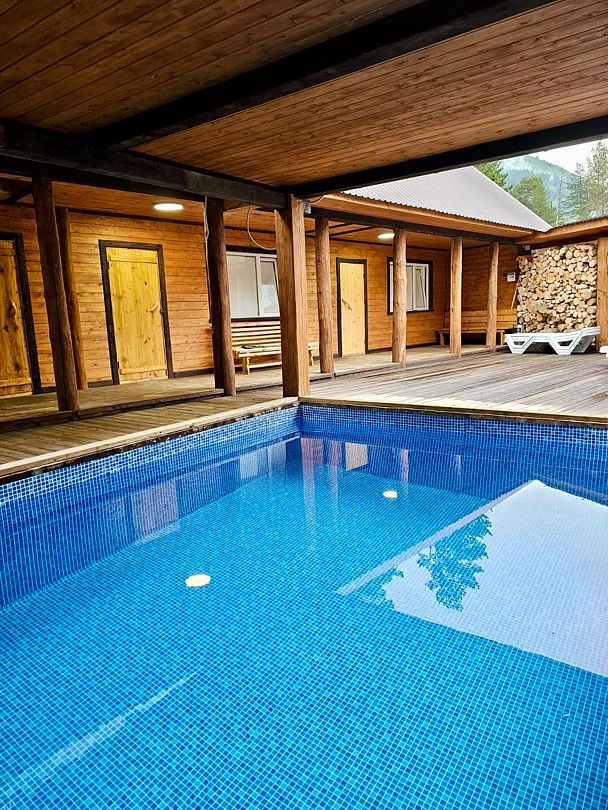Тип бассейна: открытый бассейнРядом с бассейном: шезлонгиРазмеры: 4 x 5 мПлощадь: 20 м²Глубина: 200 смПериод работы: летний сезон -