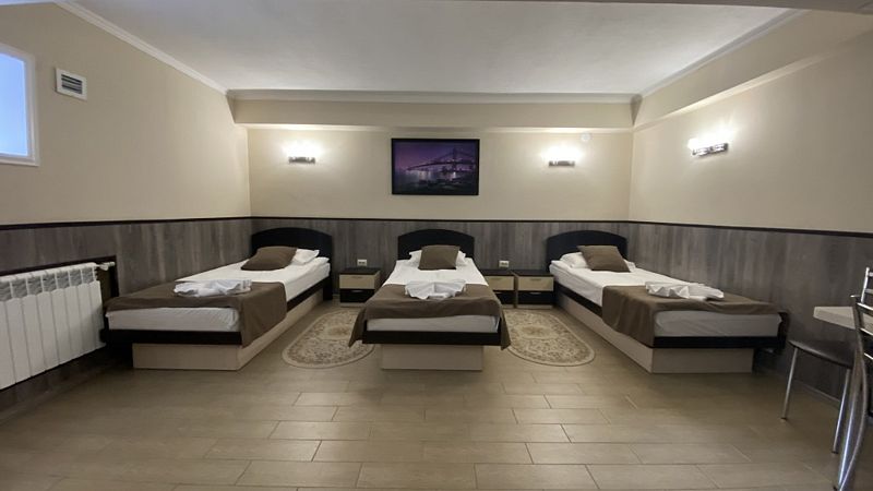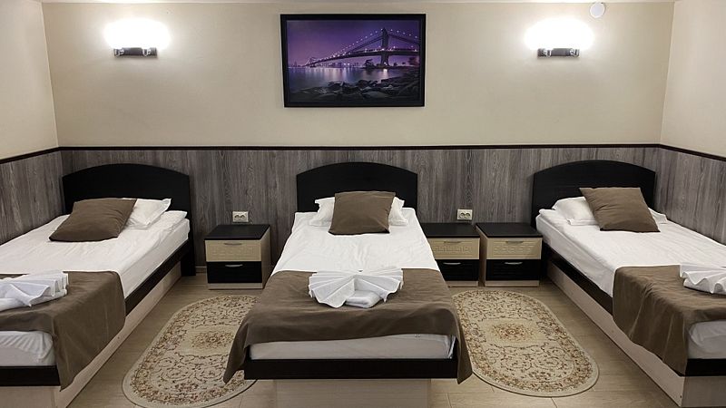 В номере есть все необходимое для Вашего комфортного проживания: три удобные односпальные кровати с чистым и свежим постельным бельем, душевая с гигиеническими средствами (одноразовые шампунь и гель для душа, а также жидкое мыло в дозаторе).