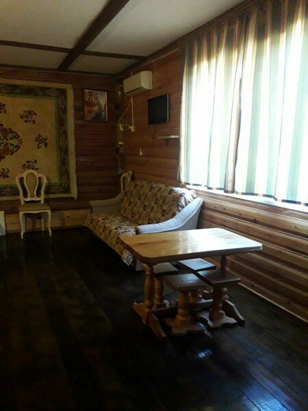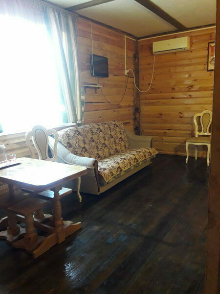 В доме расположено 6 номеров. В номерах двуспальные кровати и раскладные диваны для размещения 2 взрослых и 2 детей. В каждом номере душ и туалет. В доме есть большой оборудованный греческий зал для приготовления пищи, баня. Рядом с домом расположена беседка с мангальной зоной и бассейн.
