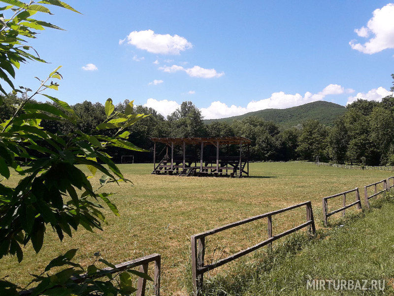Семейный отдыхДостоинстваБаза хороша для кратковременных вылазок на природу. У нас был там корпоратив недавно. Шашлык, солнце, лето! Территория позволила даже шатры установить на траве. В общем, для мероприятий очень рекомендую «Каштановую рощу» в Тхамахе.