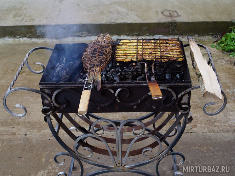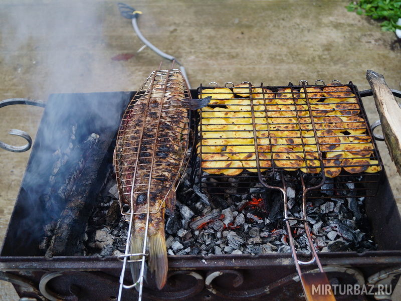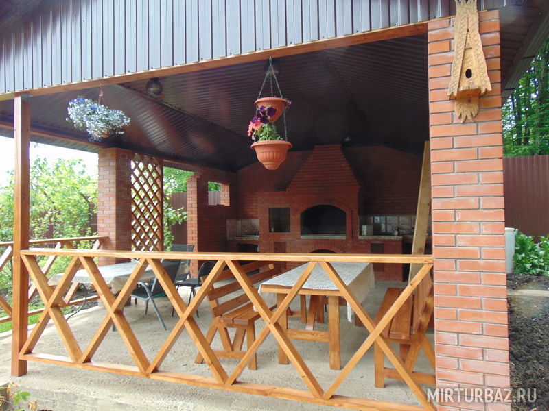 Дополнительно сдается на день с 10:00 до 18:00 зона барбекю. К услугам: дрова, электрочайник, электроплита. В номерах: удобная мебель; телевизор; кондиционер; шкафы; зеркала; санузел: горячий душ, унитаз, беде, зеркала, умывальники, сушилки для полотенец; теплые полы.