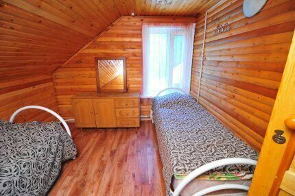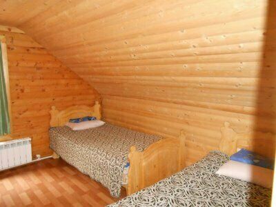 Односпальные кровати, постельное белье, кухня, баня, камин, биотуалет.