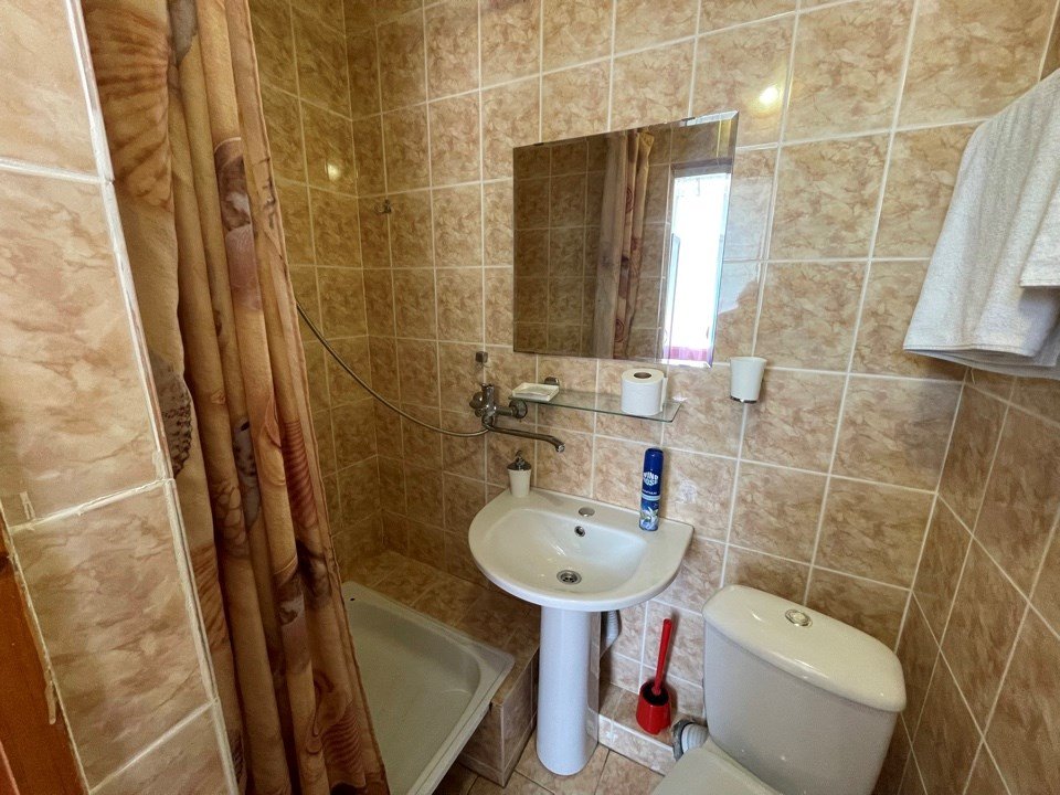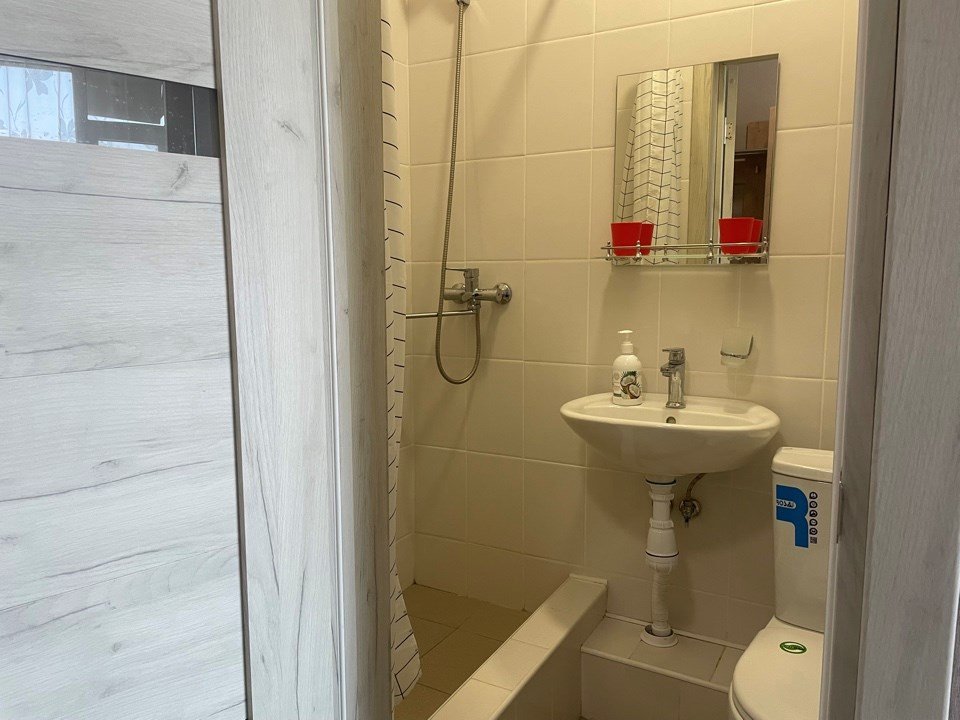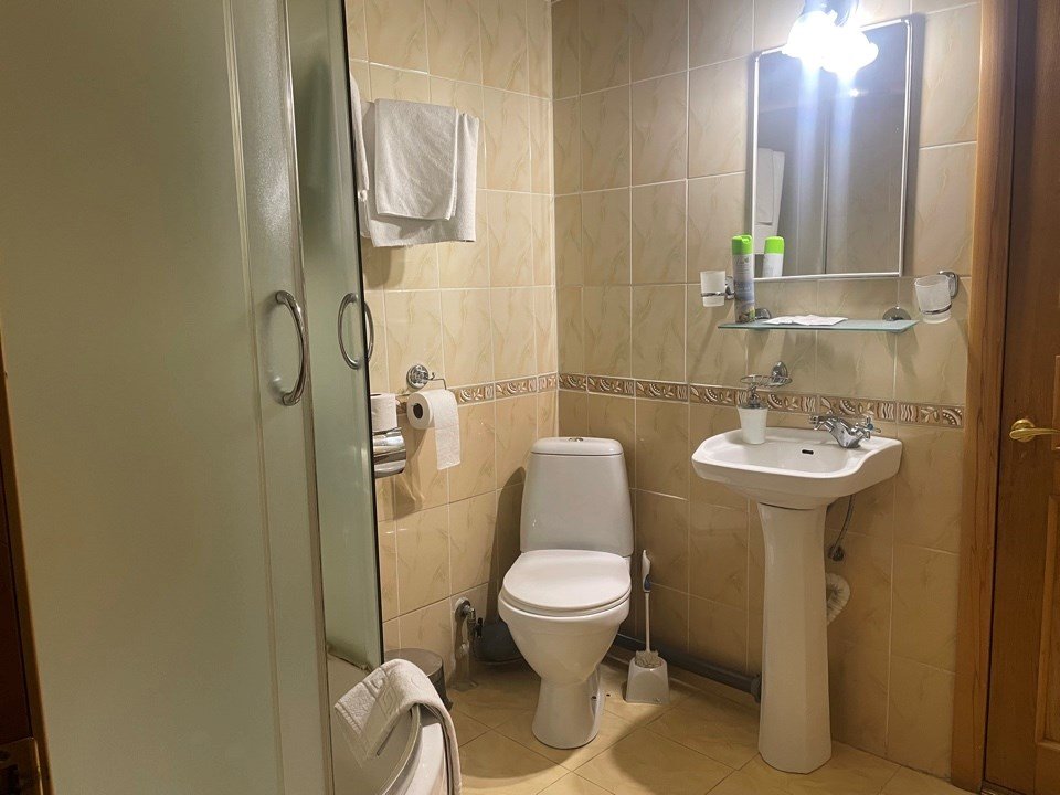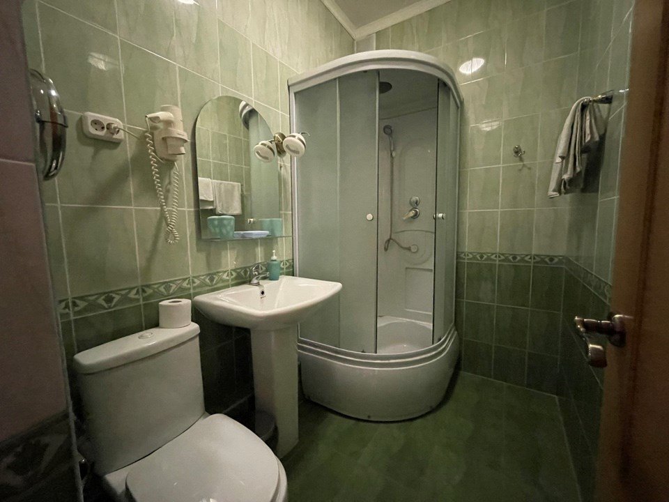 кабельное телевидение, Wi-Fi, кондиционер, светильник, ванная комната, душевая кабина, санузел, гигиенические средства, шкаф для одежды, вешалки, обеденный стол, зеркало, унитаз, мягкая мебель, питьевая вода, отопление, душ, кулер на этаже, вид во двор, стул, туалетные средства, туалет, сплит-система, цифровое тв, телевизор с плоским экраном, мини-холодильник, уборка номера, прачечная (за дополнительную плату), можно с питомцамиВ номере