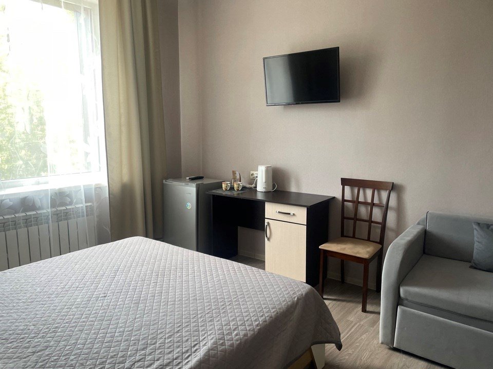кабельное телевидение, Wi-Fi, кондиционер, светильник, душевая кабина, санузел, гигиенические средства, двуспальная кровать, вешалки, обеденный стол, унитаз, мягкая мебель, питьевая вода, отопление, душ, кулер на этаже, вид во двор, стул, туалет, сплит-система, цифровое тв, раскладное кресло, телевизор с плоским экраном, мини-холодильник, кресло-кровать, уборка номера, прачечная (за дополнительную плату)В номере