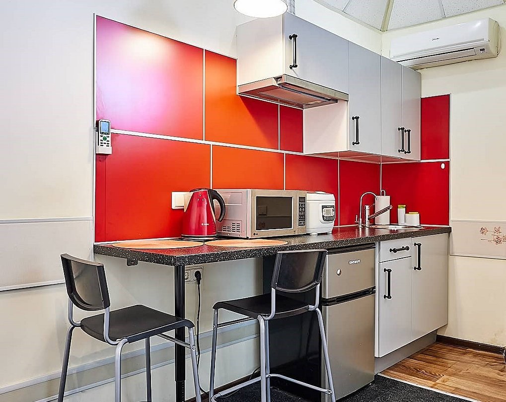 Комфортный уютный номер со всеми удобствами и виртуальным помощником Алиса. • Номер оформлен в светлых тонах, с напольным покрытием. Имеется всё необходимое для длительного проживания и питания гостей.Мини-кухня в каждом номере. Рекомендуется для бюджетного размещения. Очень хорошо подойдет для отдыха после напряженного трудового дня. Обратите внимание, заезд в номер с 14 часов до 23 часов. Шумные компании в номере запрещены.Размещение с животными не разрешено.Услуги и удобства
