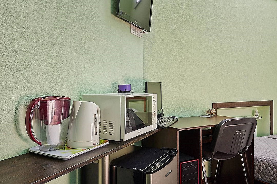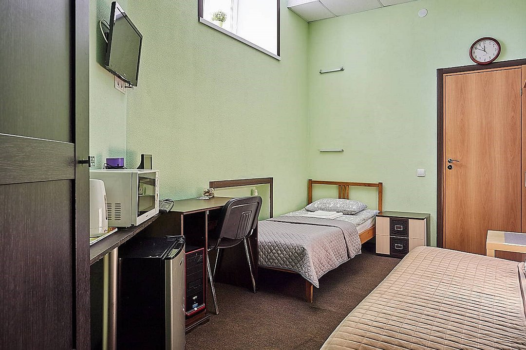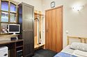 Удобный экономный номер со всеми удобствами. • Номер оформлен в светлых тонах, с напольным покрытием. Наличие компьютера и другого оборудования позволят вам почувствовать себя как дома. Очень хорошо подойдет для гостей, желающих уединиться и тихо отдохнуть. Обратите внимание - в номере нет окна! Заезд в номер с 14 часов до 23 часов. Шумные компании в номере запрещены.Размещение с животными не разрешено.Услуги и удобства