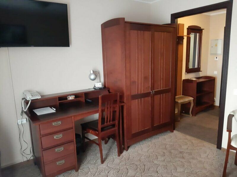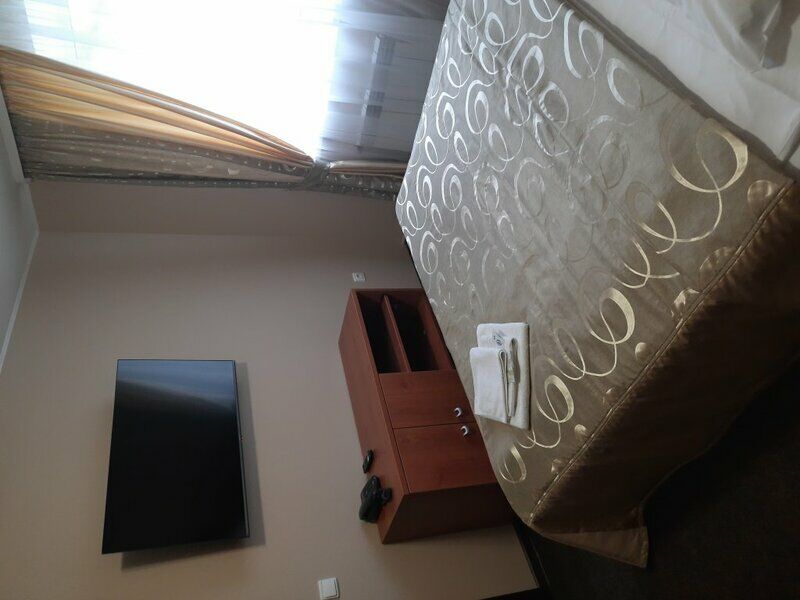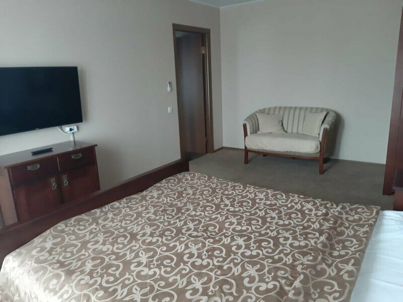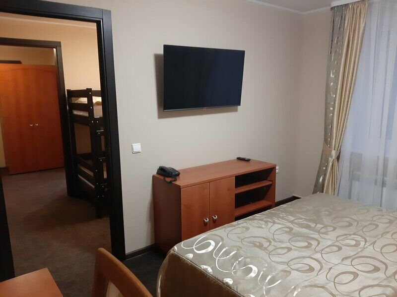 Номер 304, двухкомнатный стандарт. Чисто, светло, просторно. Две комнаты, диван раскладной. Небольшой холодильник, ТВ, шкаф, чашки и чайный набор.