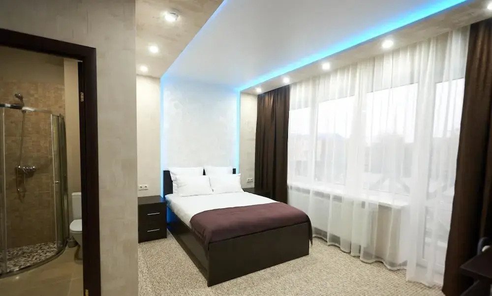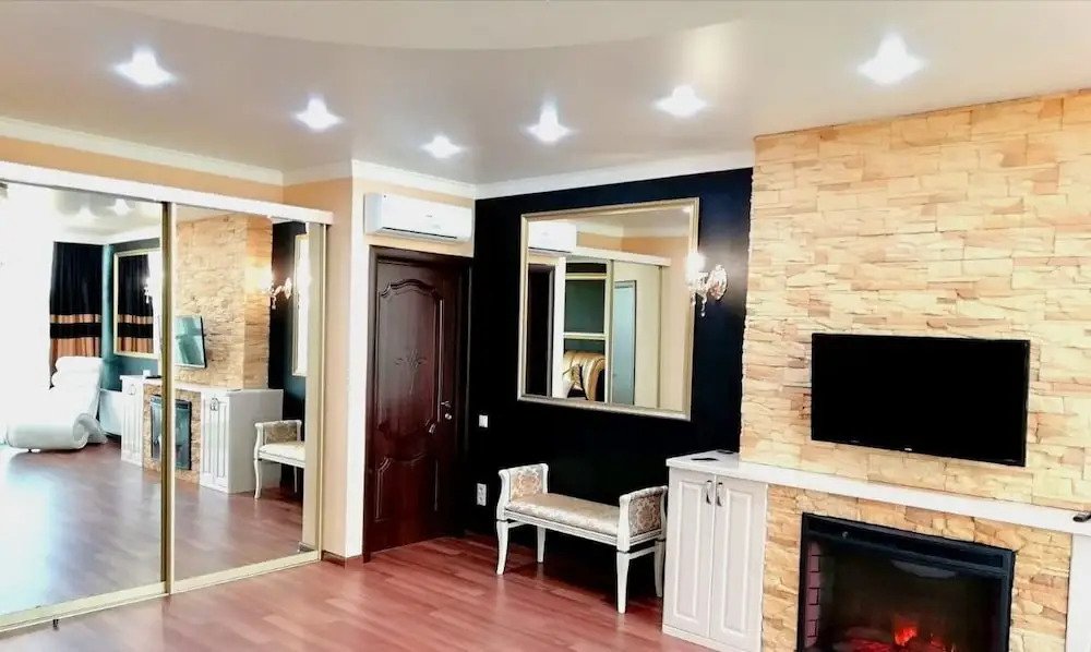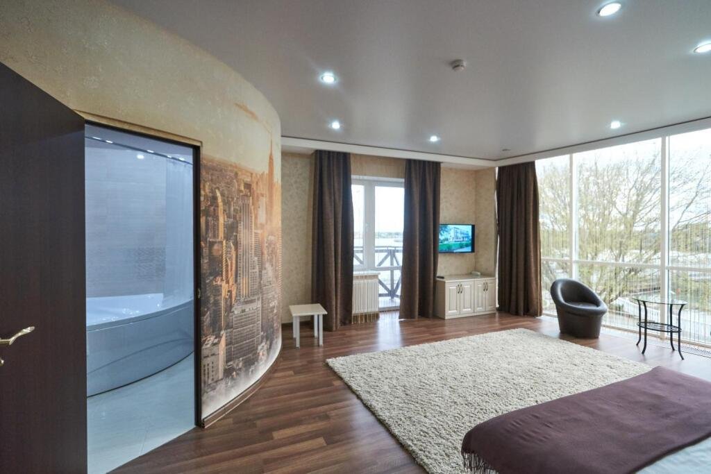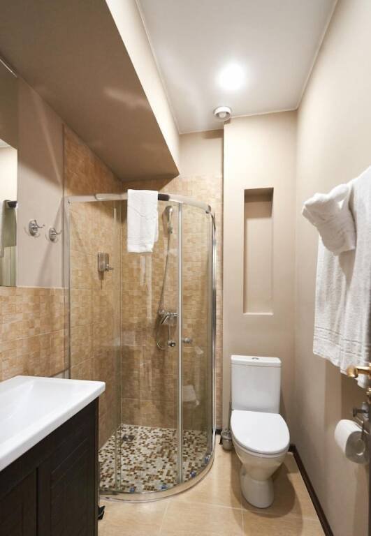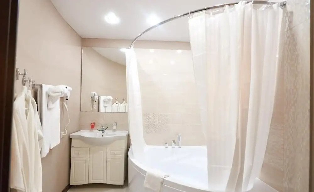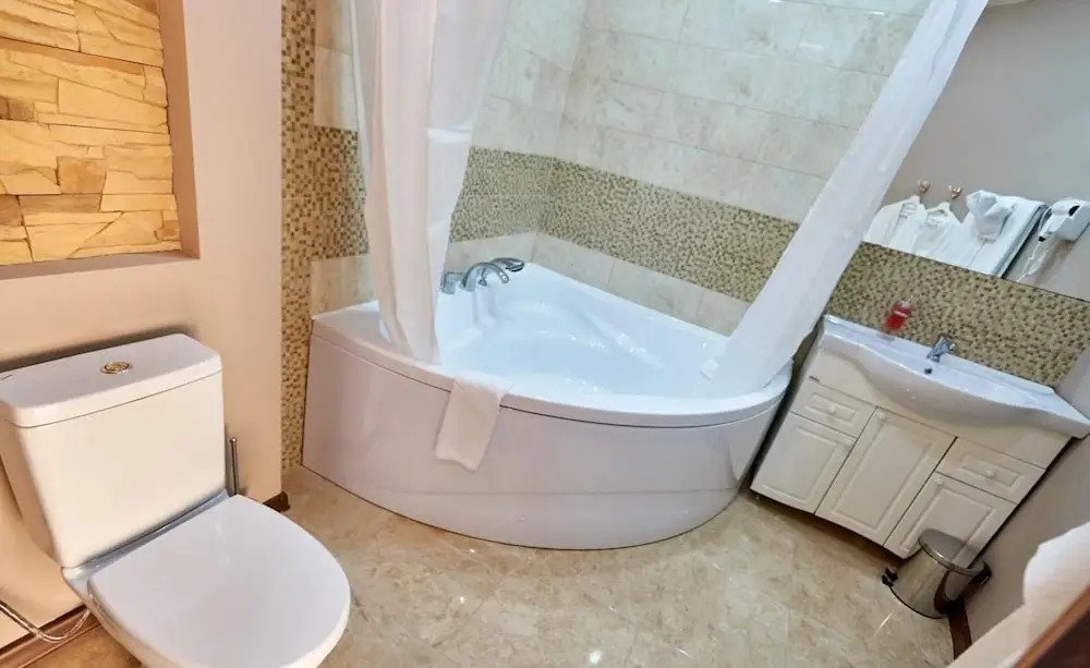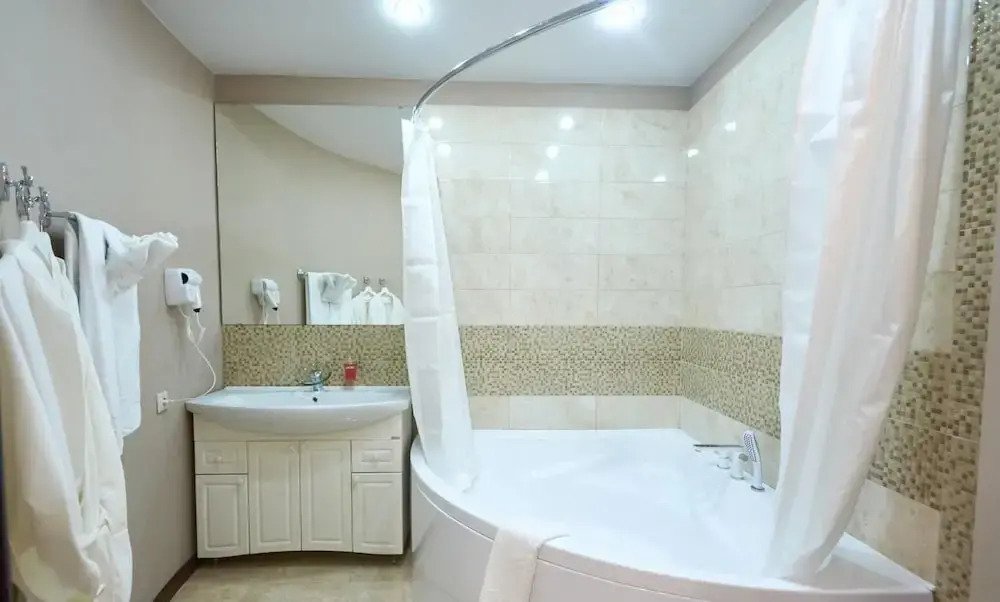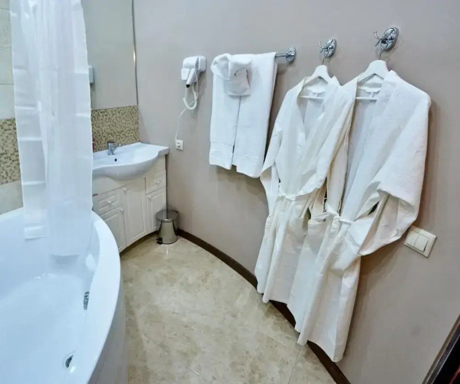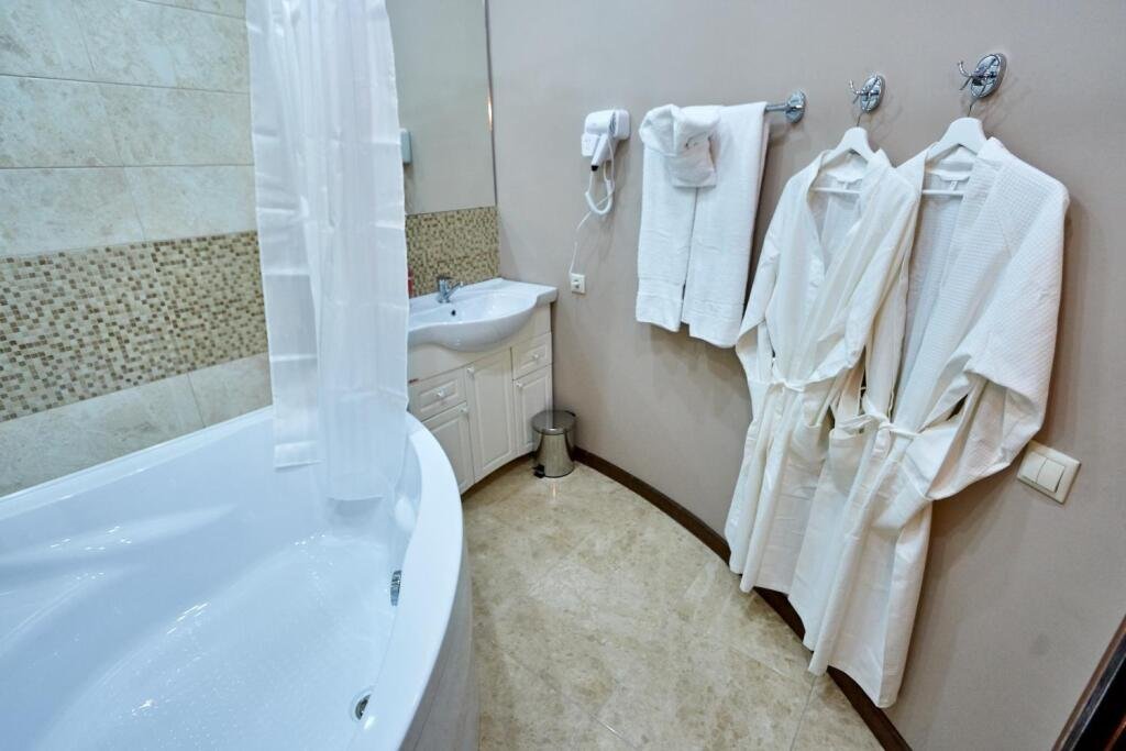 В номере вы найдёте душ и тапочки. Оснащение зависит от выбранной категории номера.