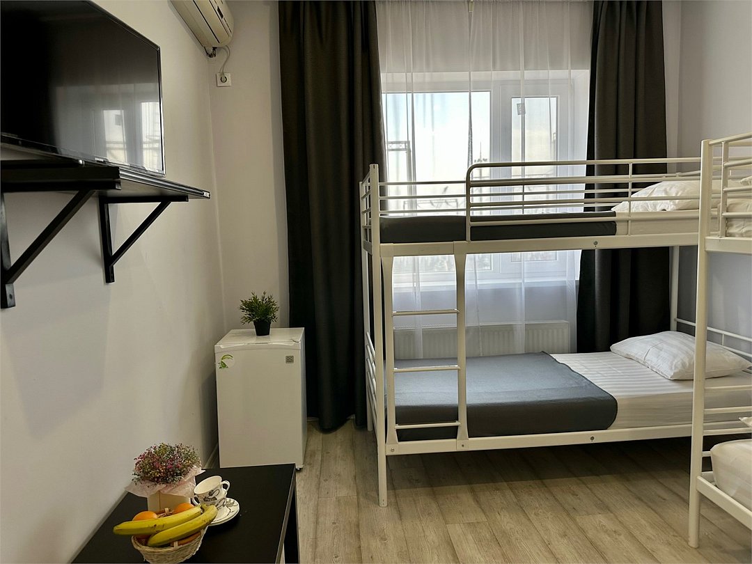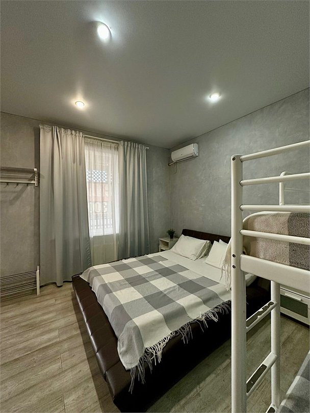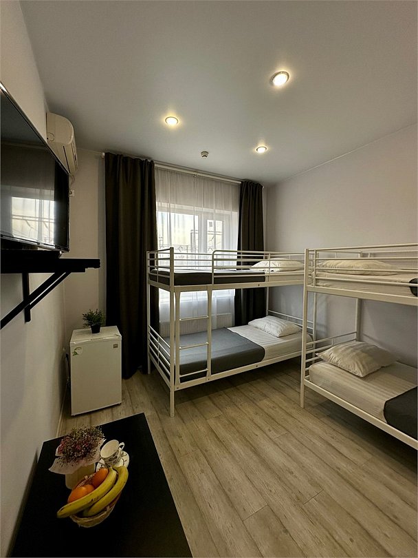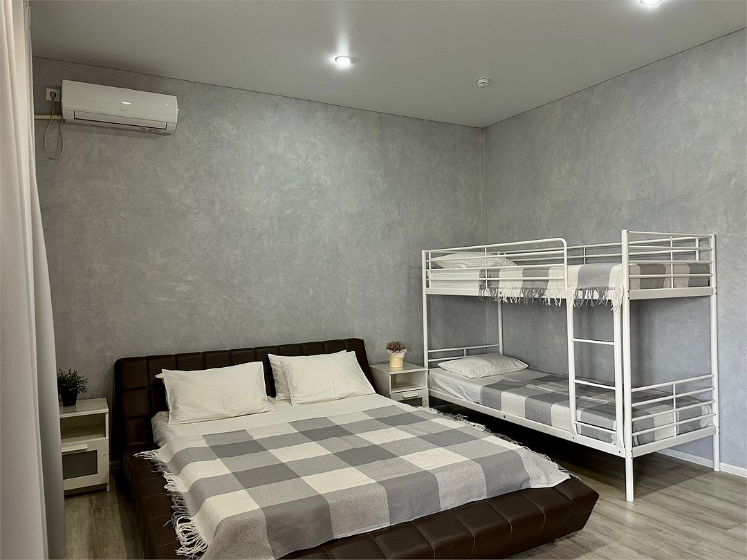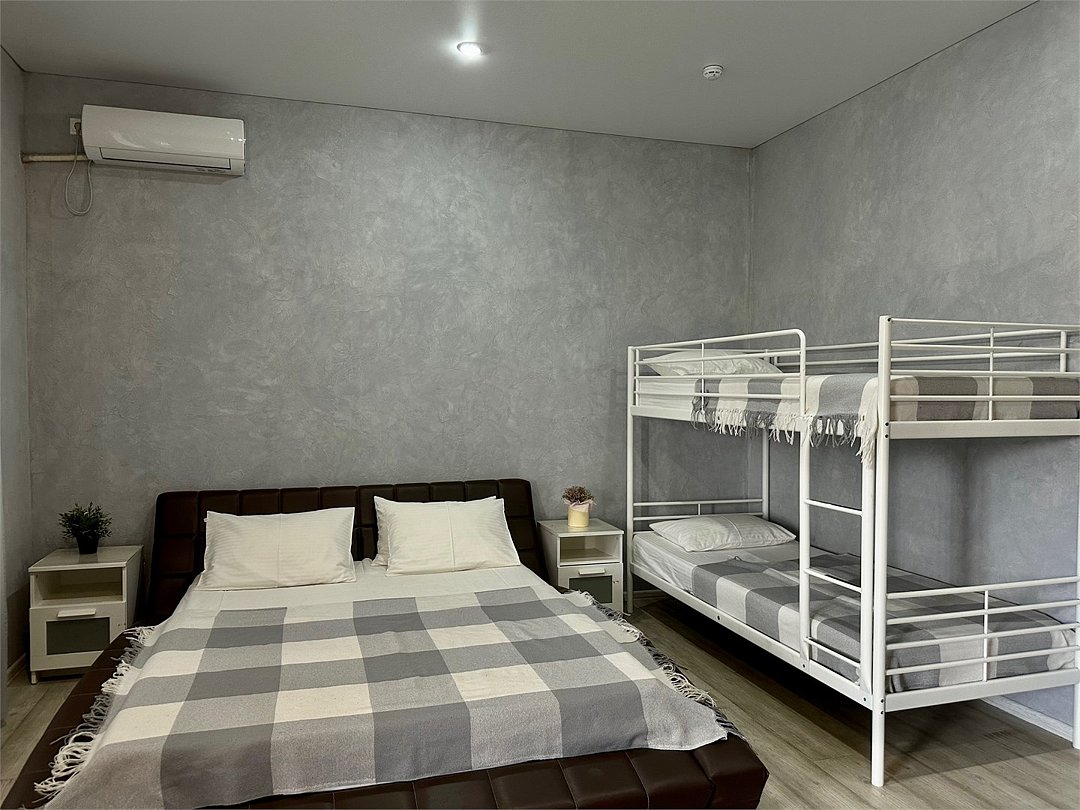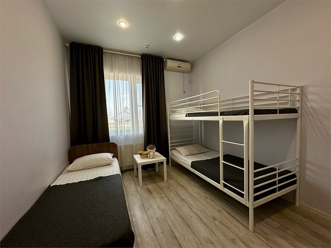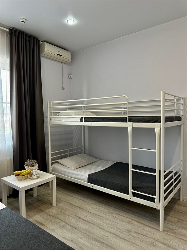Добро пожаловать в уютный уголок, где вы сможете полностью расслабиться и наслаждаться комфортом. В нашем номере вы найдете большую двуспальную кровать, которая подарит вам сладкие сны и полноценный отдых. Рядом расположена двухъярусная кровать, идеально подходящая для гостей с детьми или компанией друзей. Интерьер выполнен в спокойных тонах, создавая атмосферу умиротворения. Большие окна с плотными шторами обеспечат вам возможность регулировать освещение по вашему желанию. Оснащение номера: Двуспальная кровать Двухъярусная кровать Кондиционер для вашего комфорта в любое время года Телевизор для вечернего просмотра любимых фильмов Прикроватные тумбочки для мелочей и удобства Вешалка для одежды и полка для багажа Современная ванная комната с необходимыми принадлежностями Добро пожаловать и чувствуйте себя как дома!Услуги и удобства
