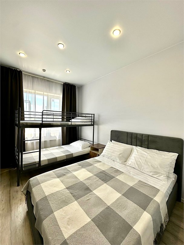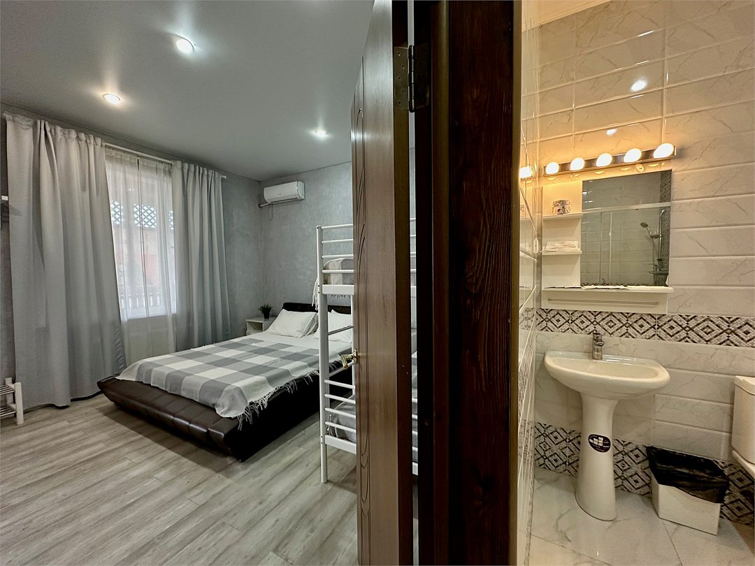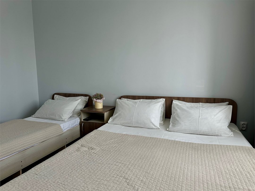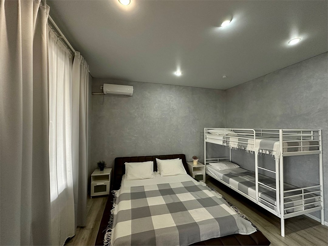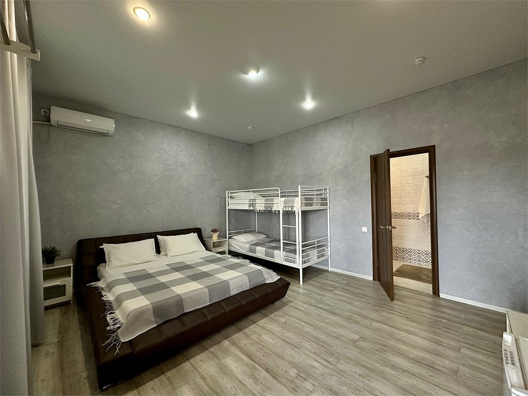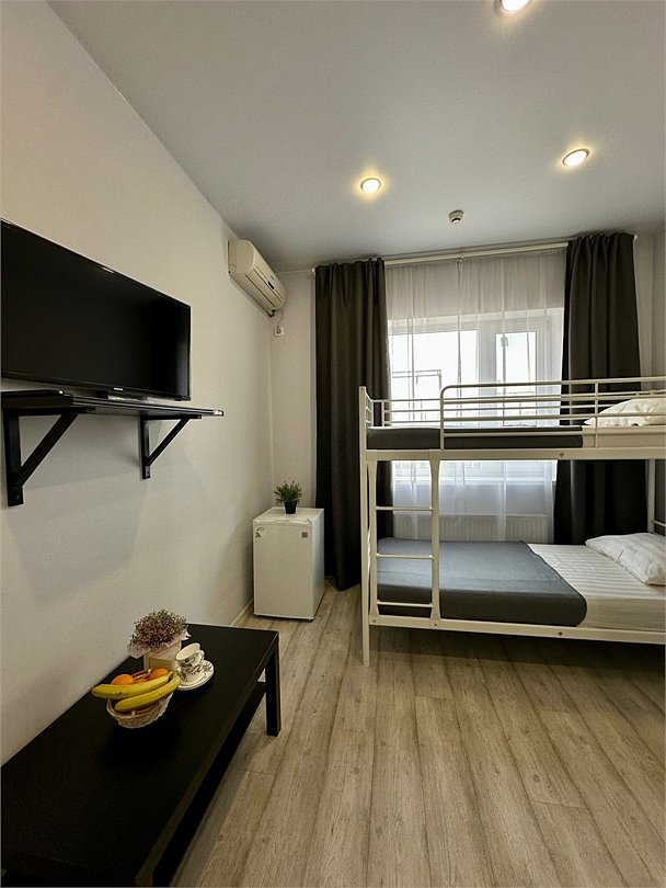 Добро пожаловать в уютный уголок, где вы сможете полностью расслабиться и наслаждаться комфортом. В нашем номере вы найдете большую двуспальную кровать, которая подарит вам сладкие сны и полноценный отдых. Рядом расположена двухъярусная кровать, идеально подходящая для гостей с детьми или компанией друзей. Интерьер выполнен в спокойных тонах, создавая атмосферу умиротворения. Большие окна с плотными шторами обеспечат вам возможность регулировать освещение по вашему желанию. Оснащение номера: Двуспальная кровать Двухъярусная кровать Кондиционер для вашего комфорта в любое время года Телевизор для вечернего просмотра любимых фильмов Прикроватные тумбочки для мелочей и удобства Вешалка для одежды и полка для багажа Современная ванная комната с необходимыми принадлежностями Добро пожаловать и чувствуйте себя как дома!Услуги и удобства