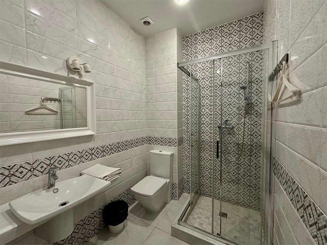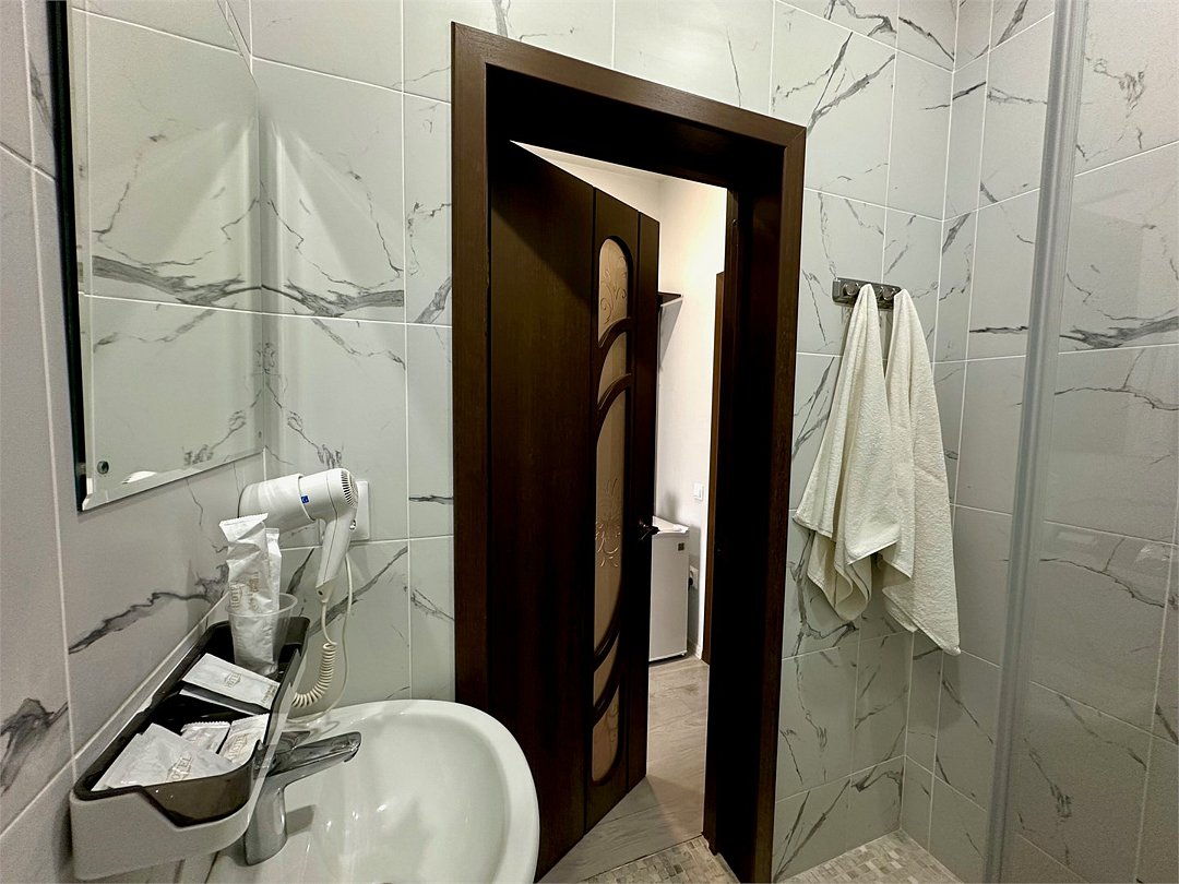 телевизор, Wi-Fi, кондиционер, светильник, настольные лампы, фен, микроволновая печь, утюг, душевая кабина, двуспальная кровать, односпальная кровать, гладильная доска, стулья, зеркало, письменные принадлежности, чайник, вид на город, кофейный столик, туалетные средства, туалет, цифровое тв, мини-холодильник, гостиничная парфюмерия, вешалки-плечики, частный двор, мыло, открытый шкафВ номере