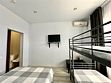 телевизор, кабельное телевидение, Wi-Fi, кондиционер, светильник, настольные лампы, фен, душевая кабина, банные полотенца, кровать «Queen size», тумбы, вешалки, зеркало, набор посуды, чайник, двухъярусные кровати, отопление, вид во двор, высокие потолки, кофейный столик, стул, телевизор с плоским экраном, мини-холодильник, гостиничная парфюмерия, частный двор, мыло, открытый шкафВ номере