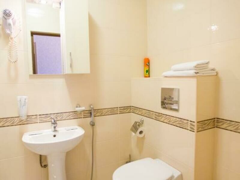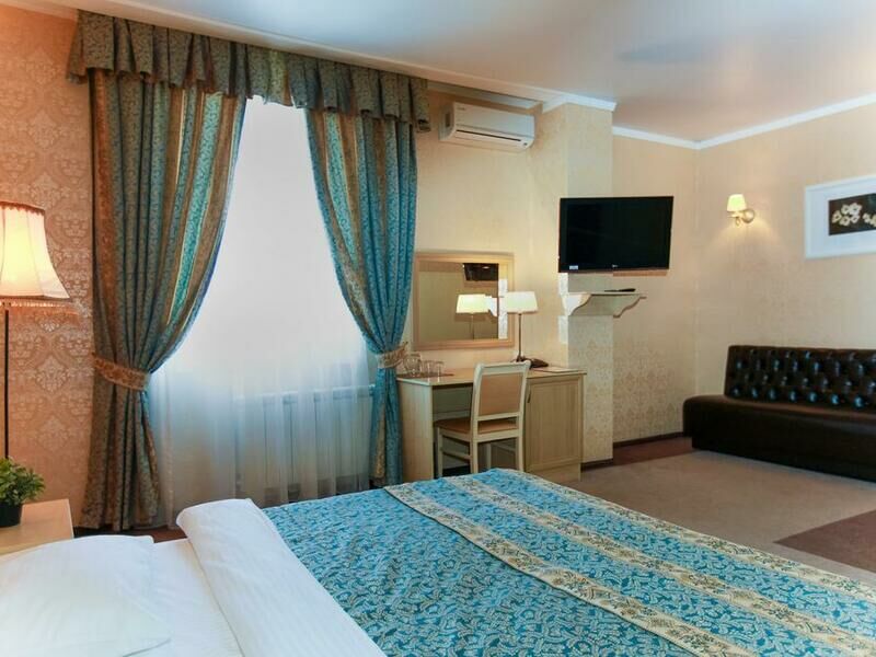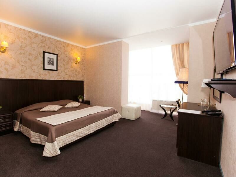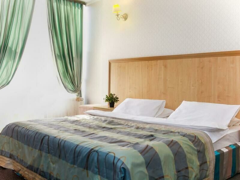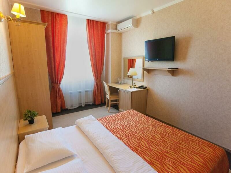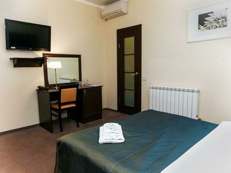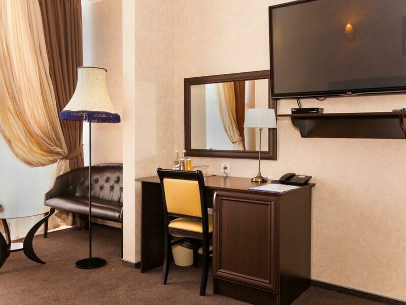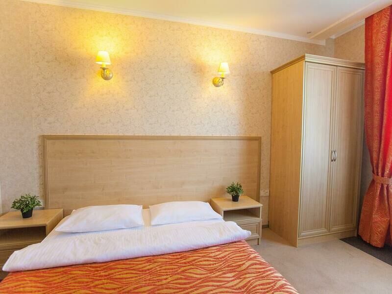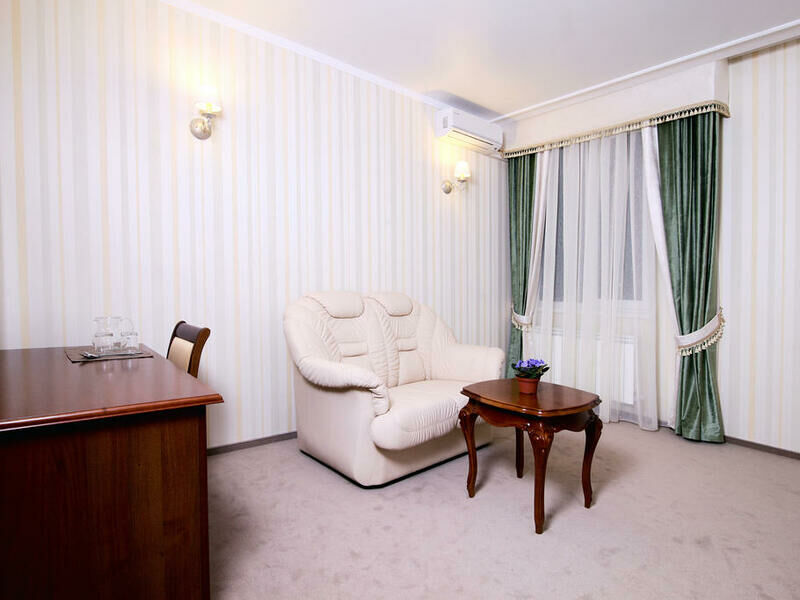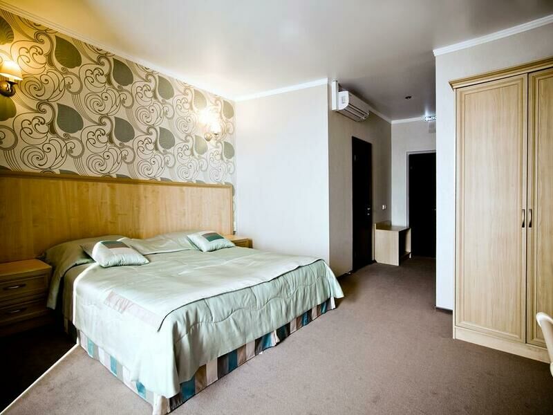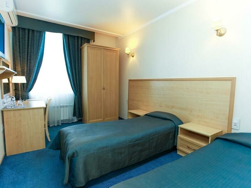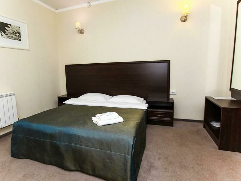 Отель разместился в здании, примыкающем к торговому центру. Гостей ожидают просторные 2-х местные номера категории Стандарт, Люкс, Полулюкс и Эконом без окна. Номера с классическим интерьером оборудованы собственной ванной комнатой с душем, необходимой бытовой техникой и укомплектованы спальным гарнитуром и мягкой мебелью.