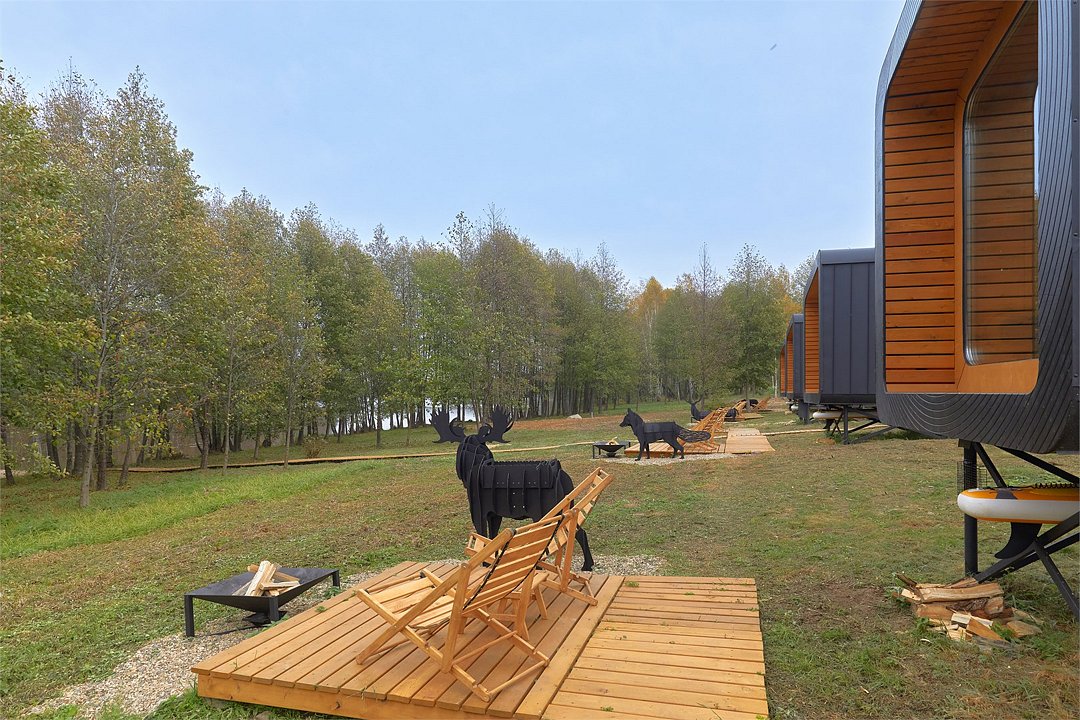 - возле каждого домика есть костровая зона, мангал для шашлыка и шезлонги для вечерних посиделок на свежем воздухе.