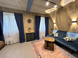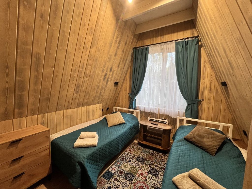 На первом этаже оборудована система водяного тёплого пола. В распоряжении гостей кухня со всем необходимым оборудованием, уютная гостиная с обеденной зоной, раскладной диван, две спальни мансардного типа (в каждой две односпальные кровати, телевизор), ванная комната на первом этаже, дополнительный санузел на втором этаже.