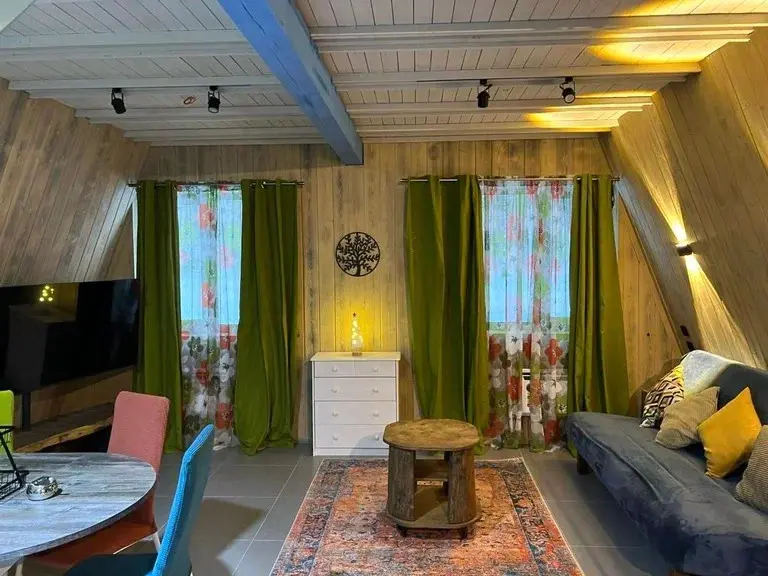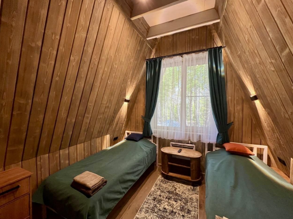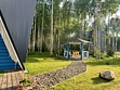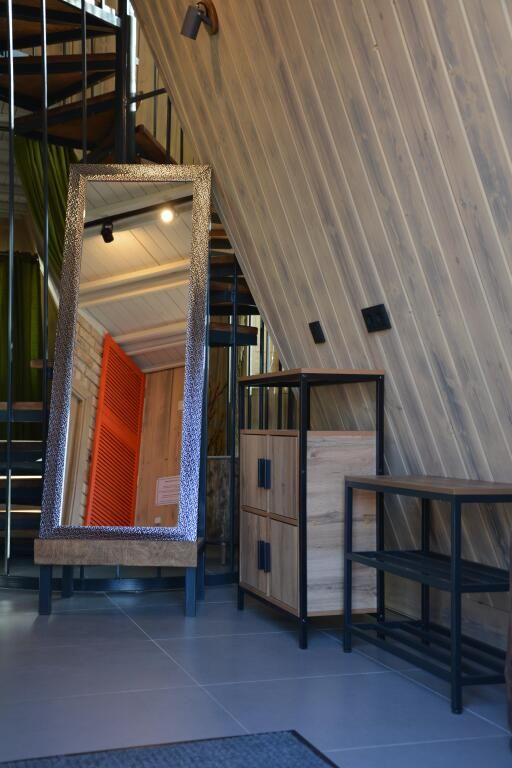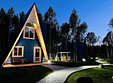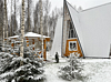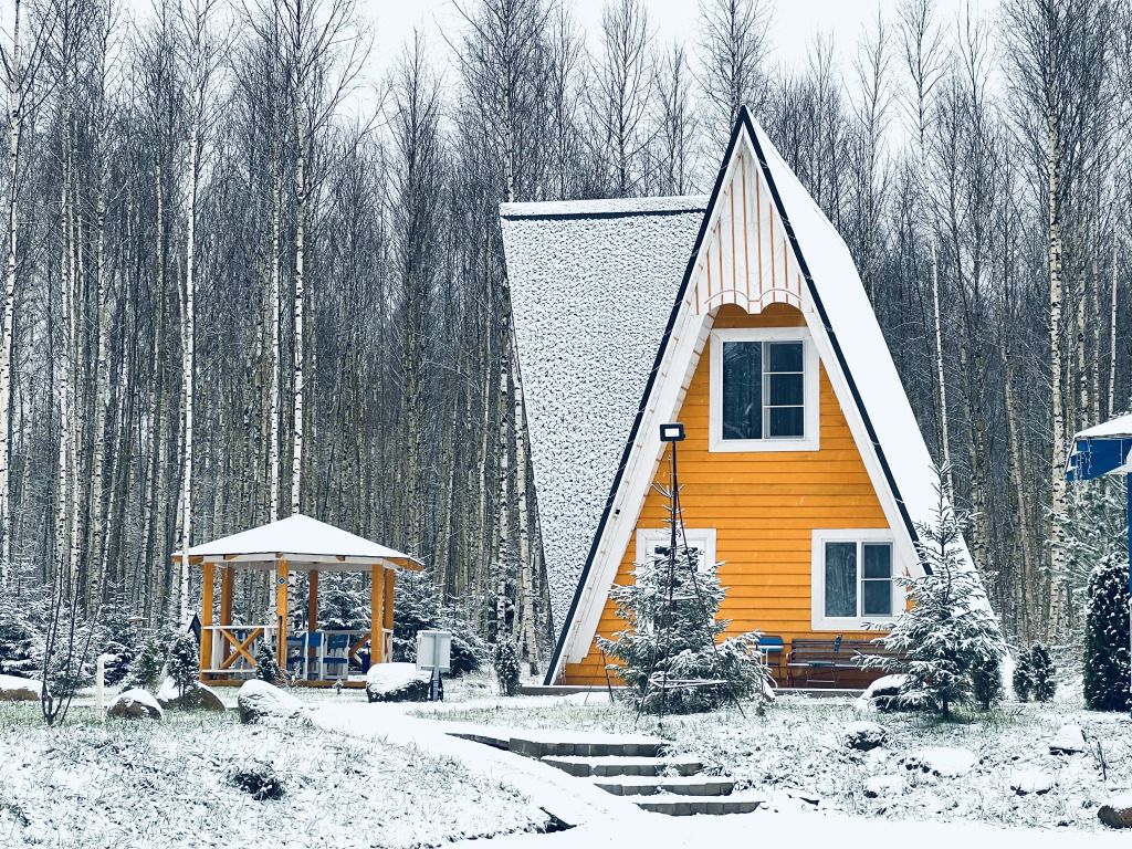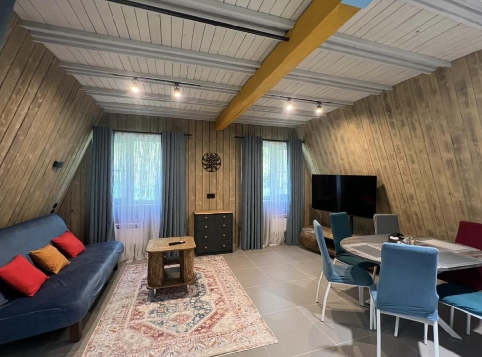 Комфортабельный дом А-Frame с мансардой, террасой, индивидуальной беседкой, расположен в лесном массиве.