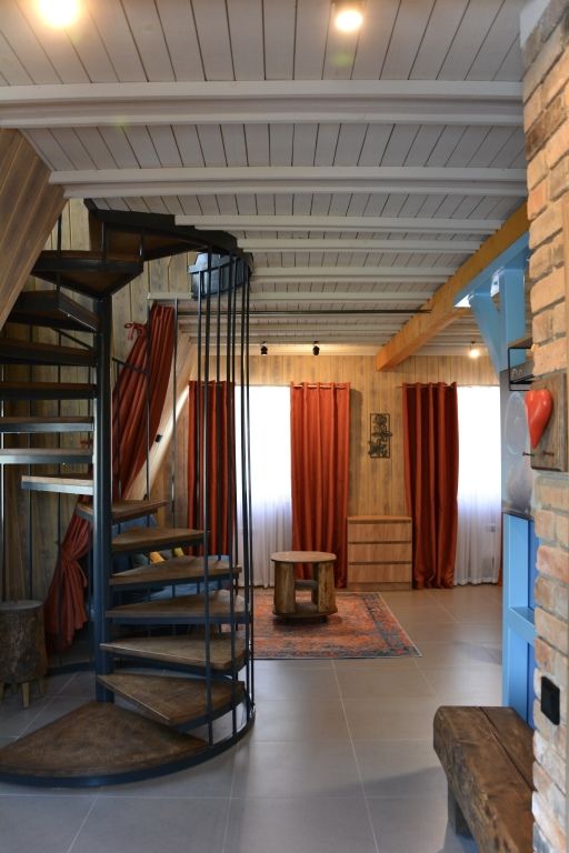 В доме: теплый водяной пол на первом этаже, Smart TV, Wi-Fi,оснащен всем необходимым для комфортного проживания 4+2 человек, с двумя санузлами, вместительной кухней-гостиной, двумя спальнями на втором этаже. В дизайне преобладают натуральные поверхности, яркие цвета.