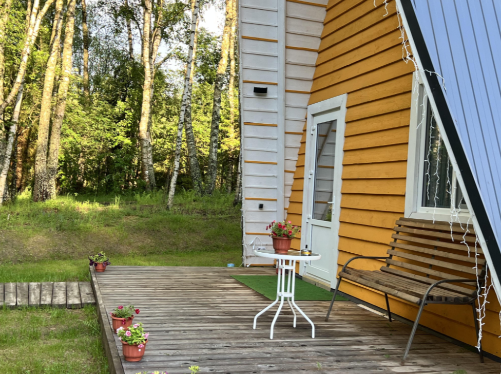Комфортабельный дом А-Frame с мансардой, террасой, индивидуальной беседкой, расположен ближе всех к лесу.