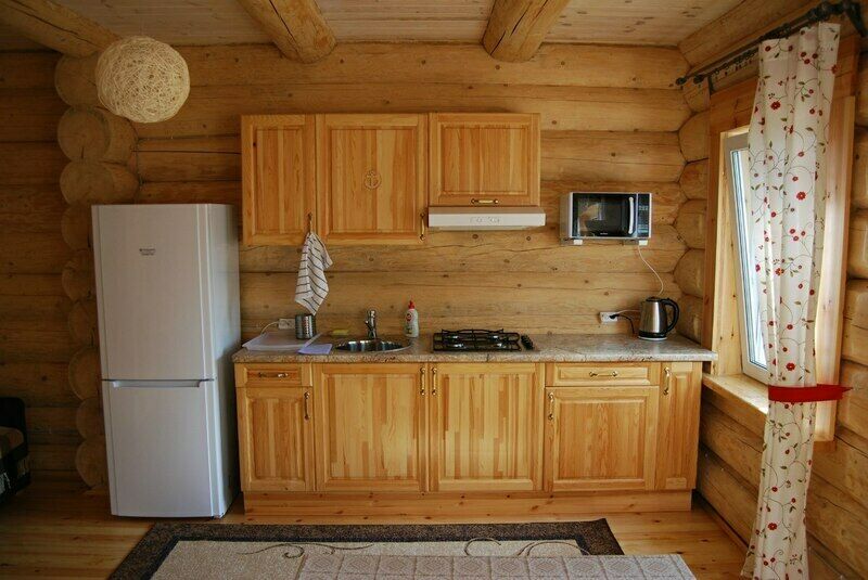 Питание гости организовывают самостоятельно. Для этого в коттеджах есть оборудованные всем необходимым кухни.