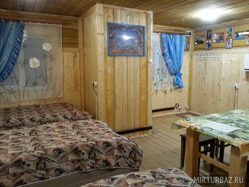 2-местный номер: одна комната, постельное белье, полотенца, ТВ, холодильник, чайник, чайная посуда, 2 кровати, стол, табуретки, обогреватель.4-местный номер: веранда, одна комната, стол, табуретки, постельное белье, полотенца, ТВ, холодильник, чайник чайная посуда, 4 кровати, обогреватель.