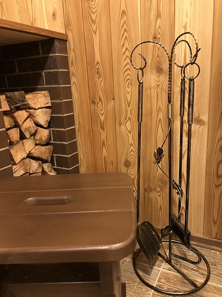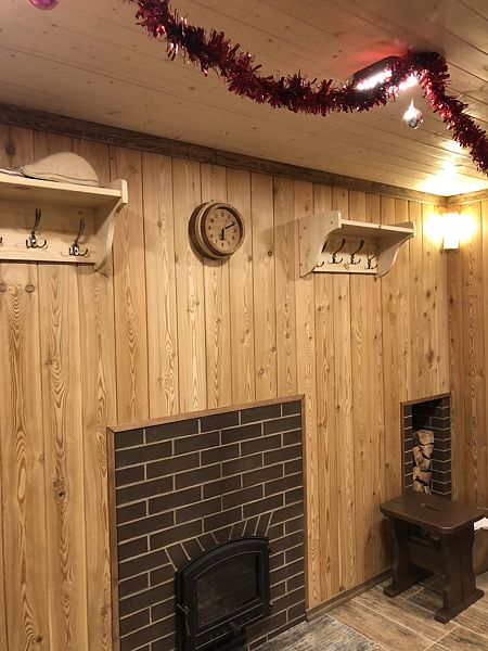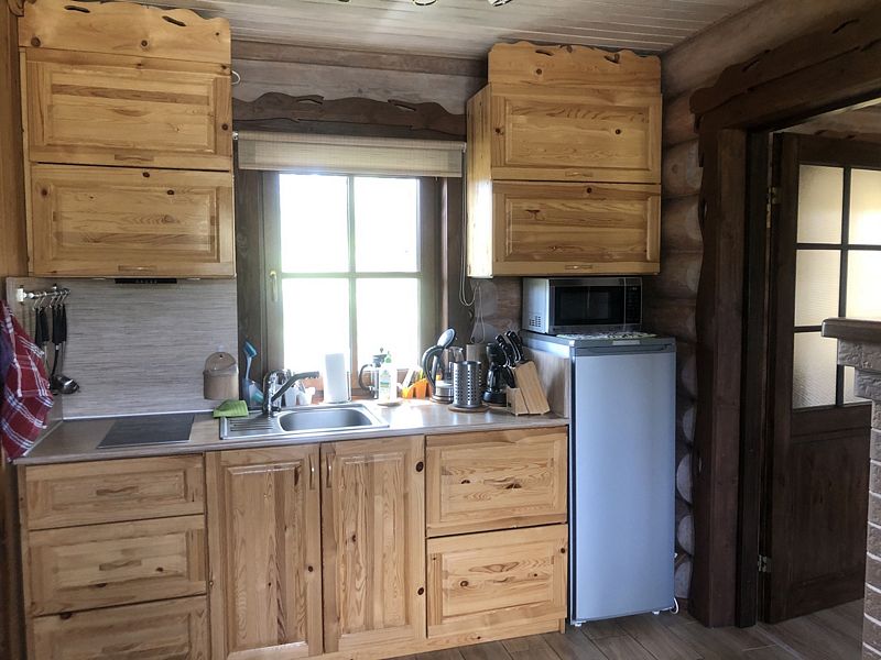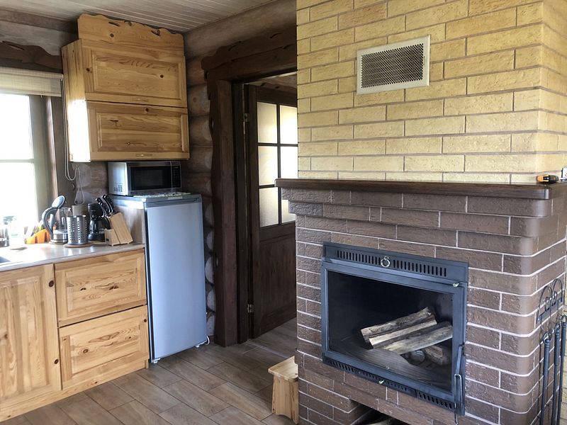 В доме: гостиная-кухня с телевизором (HD) со спальным местом на 2-х человек, камин и спальная комната с двумя кроватями на 4-х человек. Везде теплые полы.