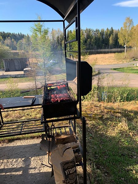 Проведение мероприятий в летний период прямо у береговой линии. Вид на Ладогу — лучшая декорация. Также на территории красивая беседка, рядом мангал, коптильня и все необходимое для приготовления пищи на огне.