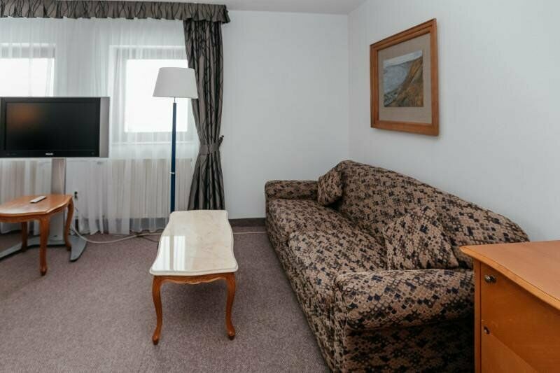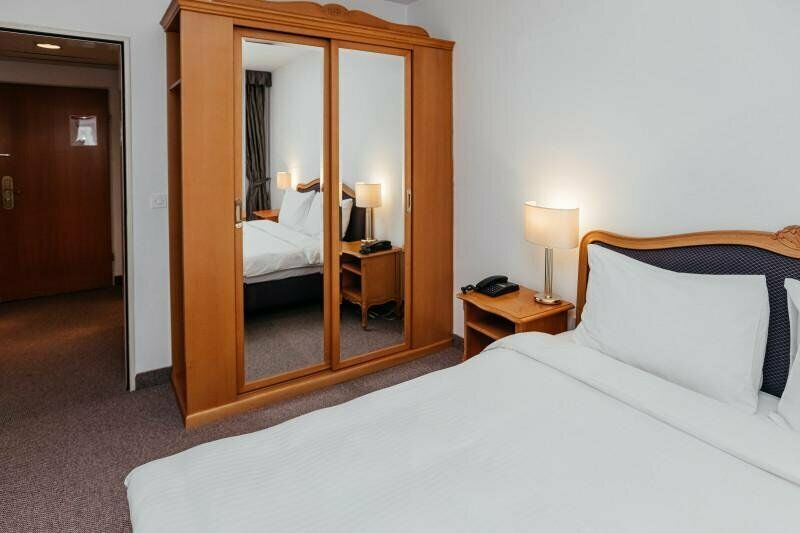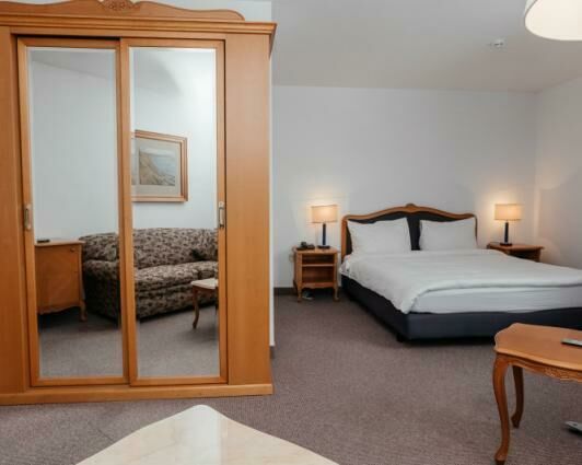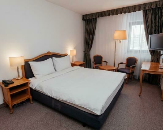 Путешествие с паройПровел одну ночь в ТобольскеОтель по отзывам один из лучших в Тобольске. Далеко от исторического центра 4 км, но такси дешевое, так что не страшно. В полной мере оценить отель у нас с супругой не было возможности заселялись в 23 вечера и выселялись в 11 как проснулись сразу после завтрака. Ремонт уже старый в отеле, двери потерты, ванная комната тоже. Но в целом приятно находится. Завтраки в отеле до 11. Мы с супругой пошли в 10-30 на него, и уже ничего не было. Как следствие были недовольны завтраком, каши все закончились, масло сливочное было замерзшее, и вообще всего было очень мало по кусочку мне и супруге. Так что, под окончание завтрака лучше не приходить, иначе не поедите. С персоналом кроме ресепшена при заселении/выселении не контактировал…