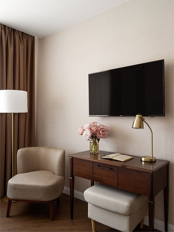 Wi-Fi, интернет, телефон, кондиционер, фен, обогреватель, халаты, банные полотенца, тапочки, гигиенические средства, две односпальные или большая двуспальная кровать, тумбы, стулья, шкаф для одежды, вешалки, зеркало, чайный набор, набор посуды, обслуживание номеров, сейф, чайник, унитаз, раковина, питьевая вода, вид на город, стаканы, туалетные средства, цифровое тв, внутренний телефон, телевизор с плоским экраном, мини-холодильник, гостиничная парфюмерия, номер для некурящих, рабочий столВ гостиничном номере