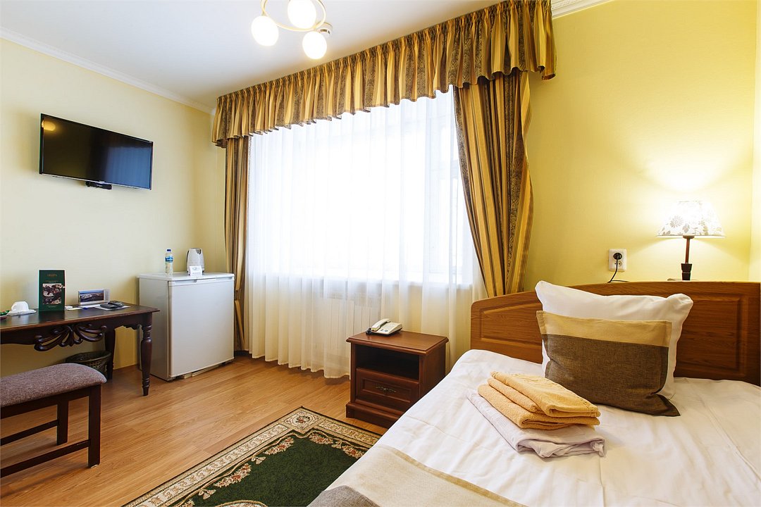 Классические номера для одноместного размещения площадью 14 кв. м. Оптимальный вариант для деловой поездки.Услуги и удобства